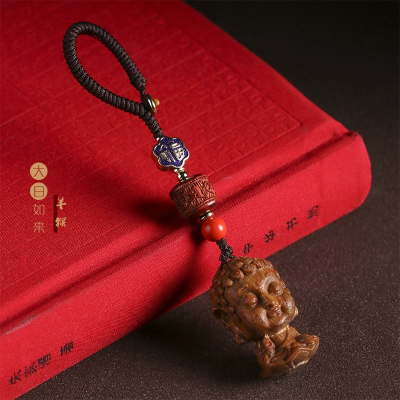 Green sandalwood twelve zodiac natal Buddhas and eight guardian car keychain pendants mascot Fudo Myoyo Bodhisattva
