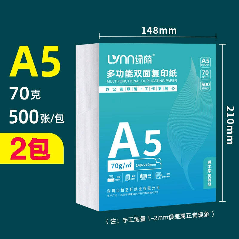 Green shade a5 copy paper a5 printing paper 500 sheets 70g voucher paper 80g thickened white paper test paper draft paper student office paper full box double-sided