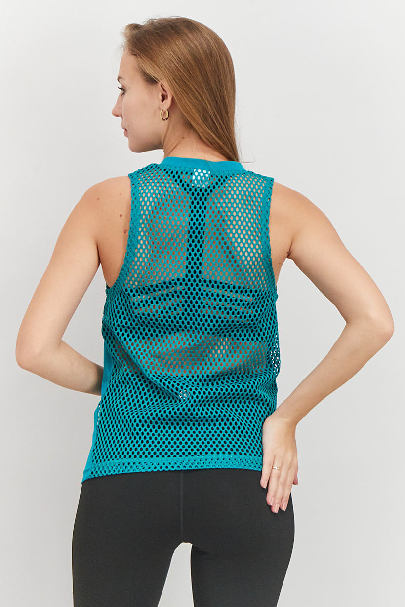 Green Sleeveless Mesh Tank Top for Women.