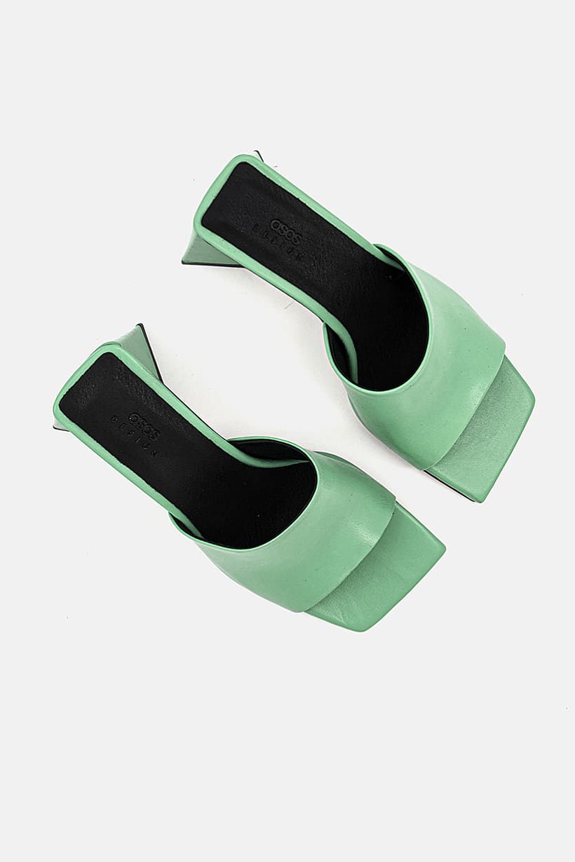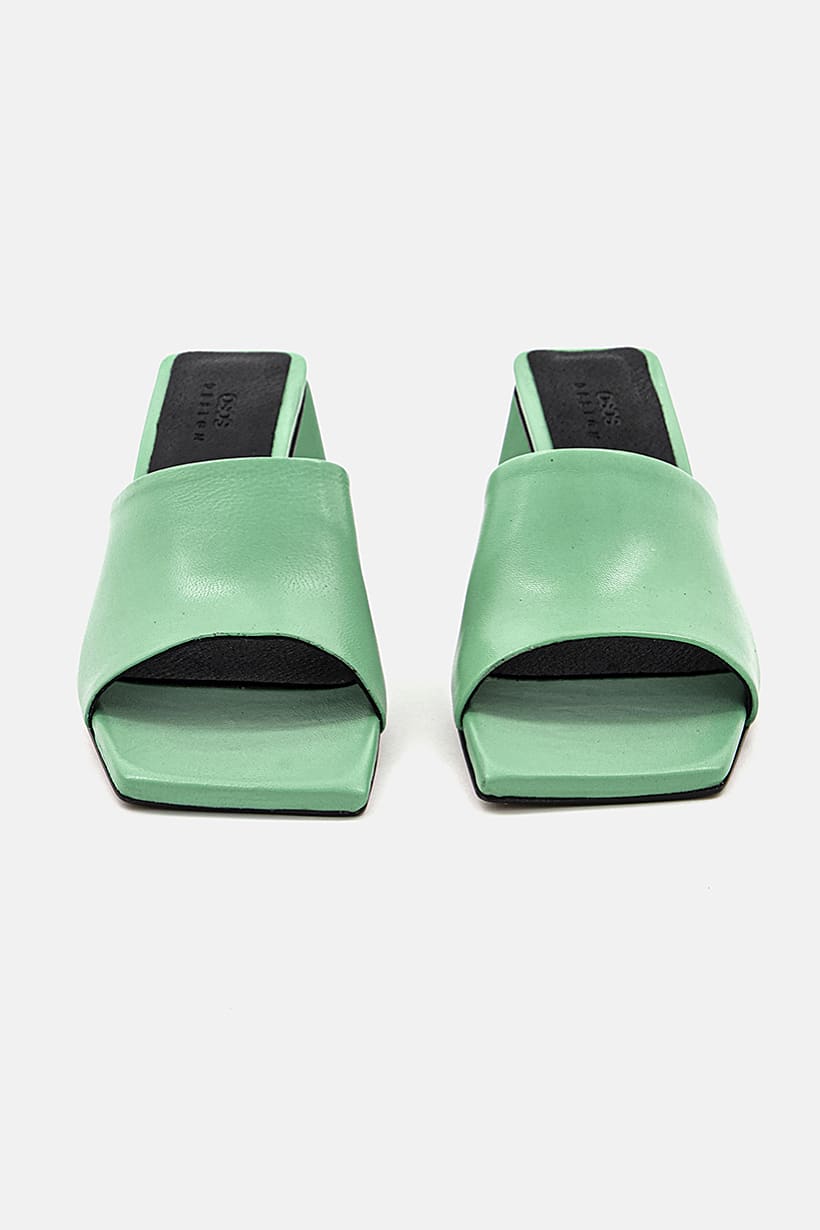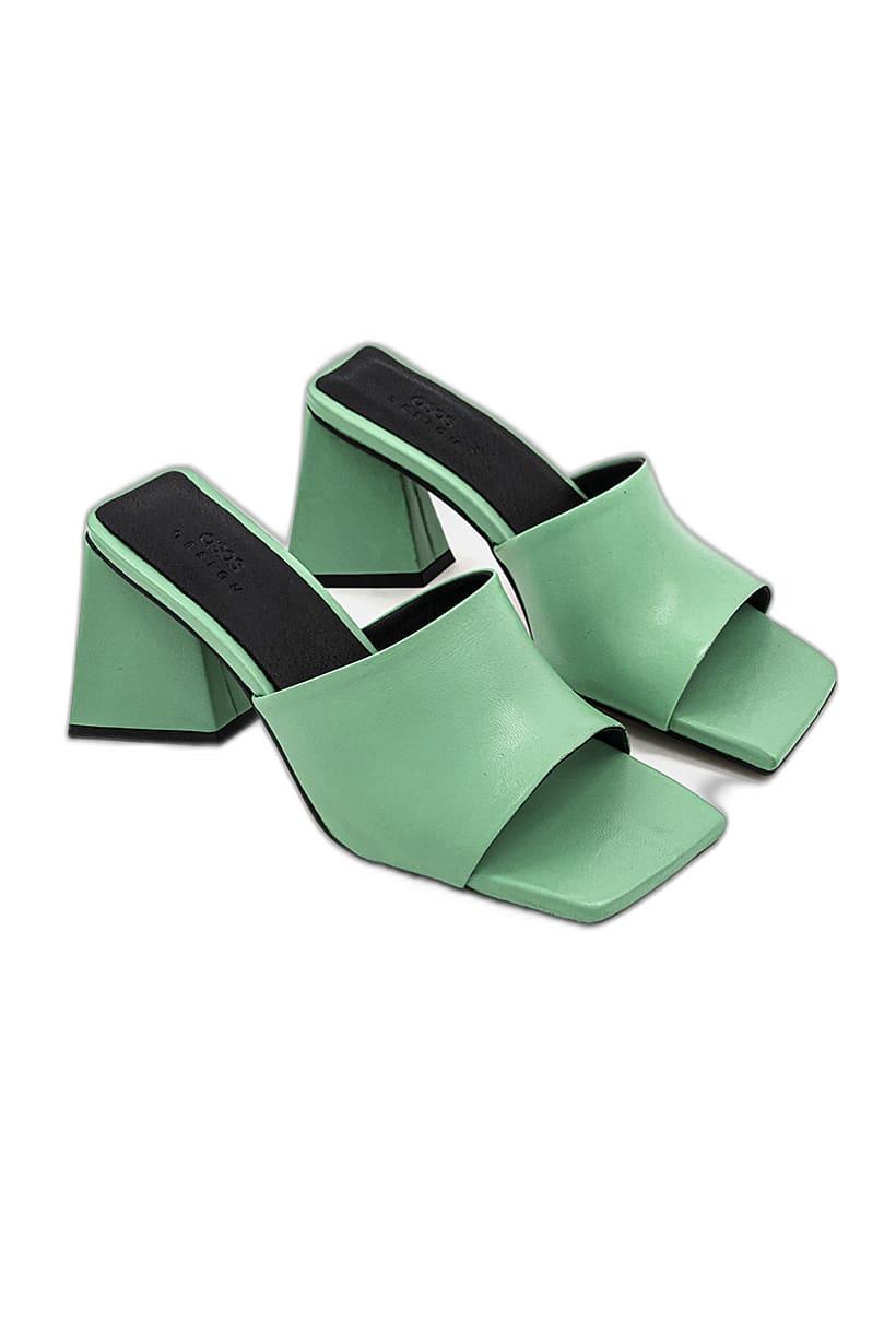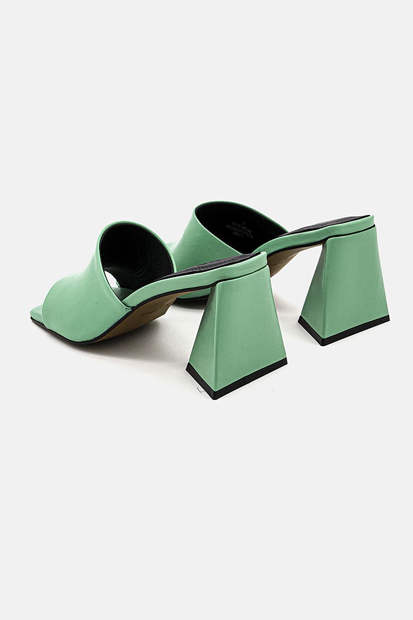 Green Slip-On Heeled Sandals for Women with Open Toe.