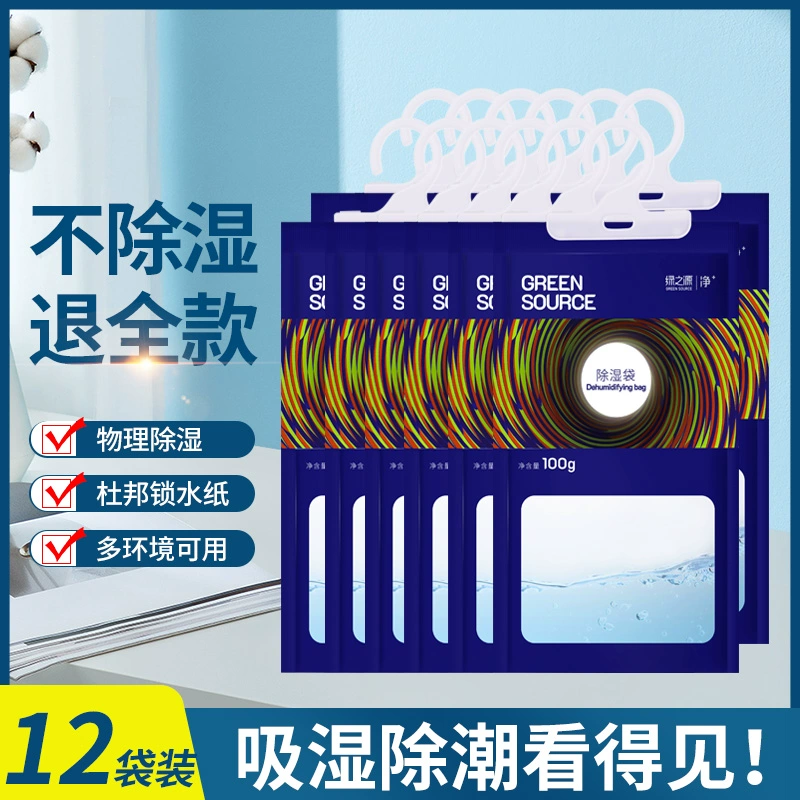 | nameOriginal | Green Source hangable dehumidification bag household wardrobe desiccant indoor absorbent and mildew-proof dormitory wardrobe absorbent and moisture-proof |