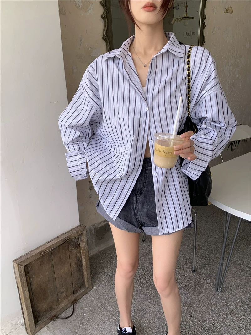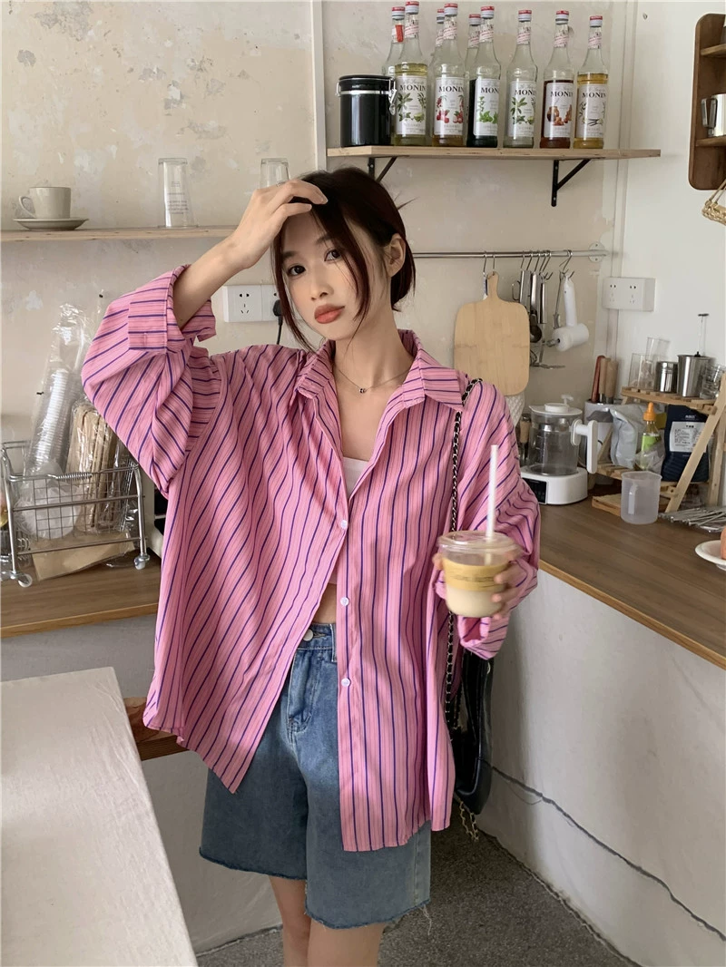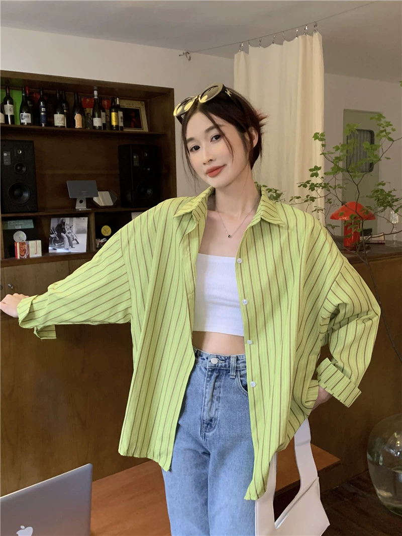 | nameOriginal | Green striped mid-length long-sleeved shirt for women summer 2024 new Korean style loose slimming sun protection casual shirt |