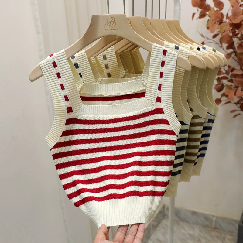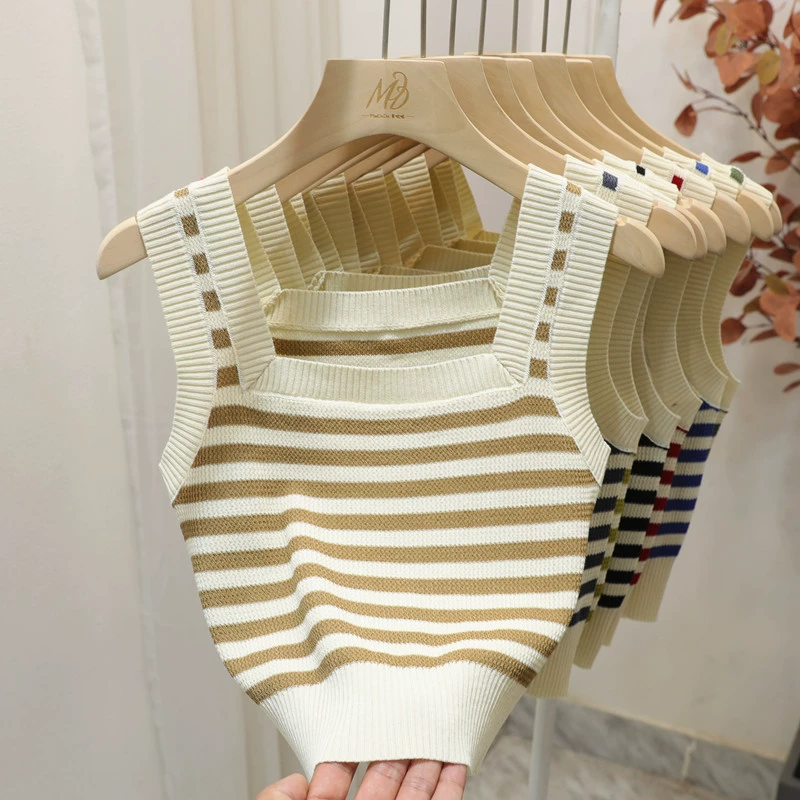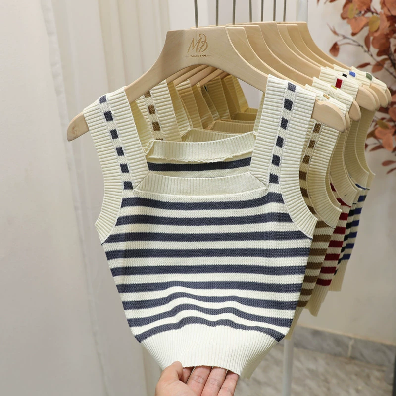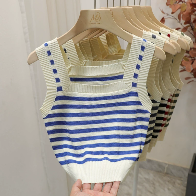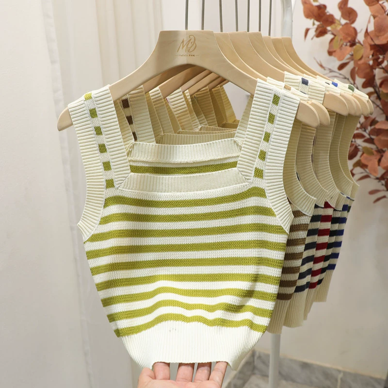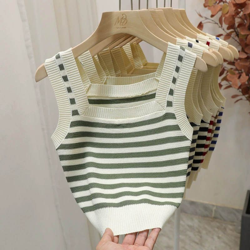 | nameOriginal | Green striped slim fit and versatile square neck camisole |