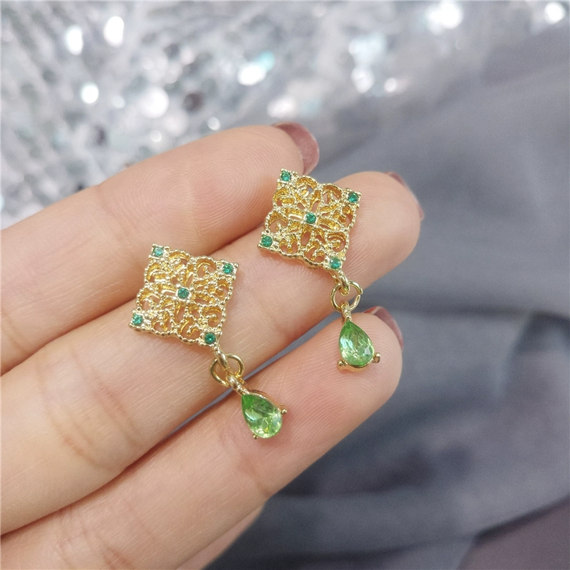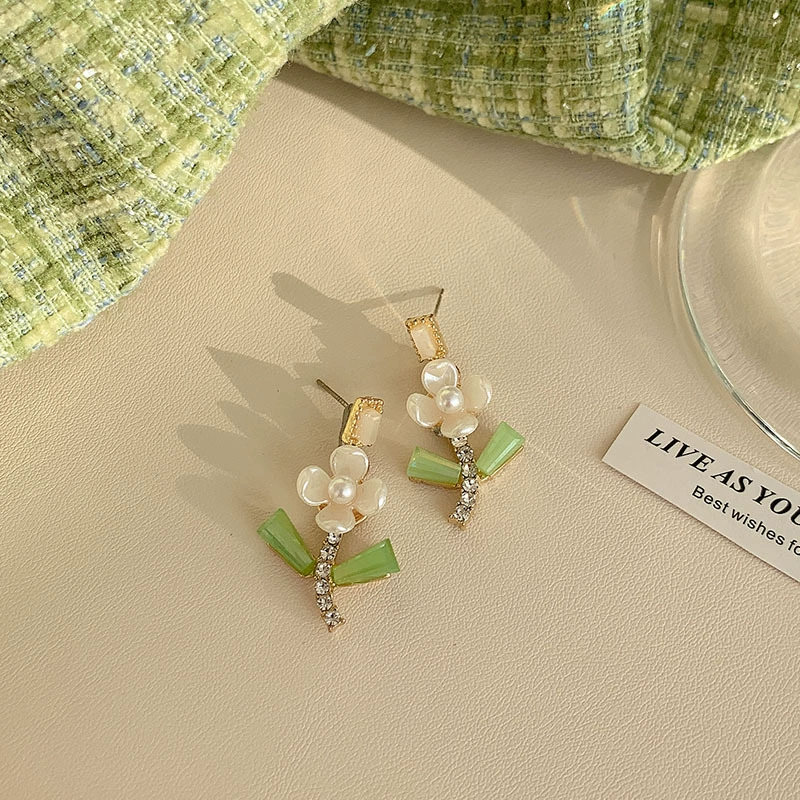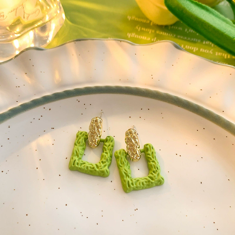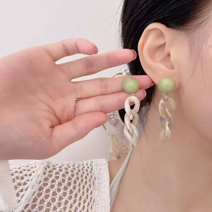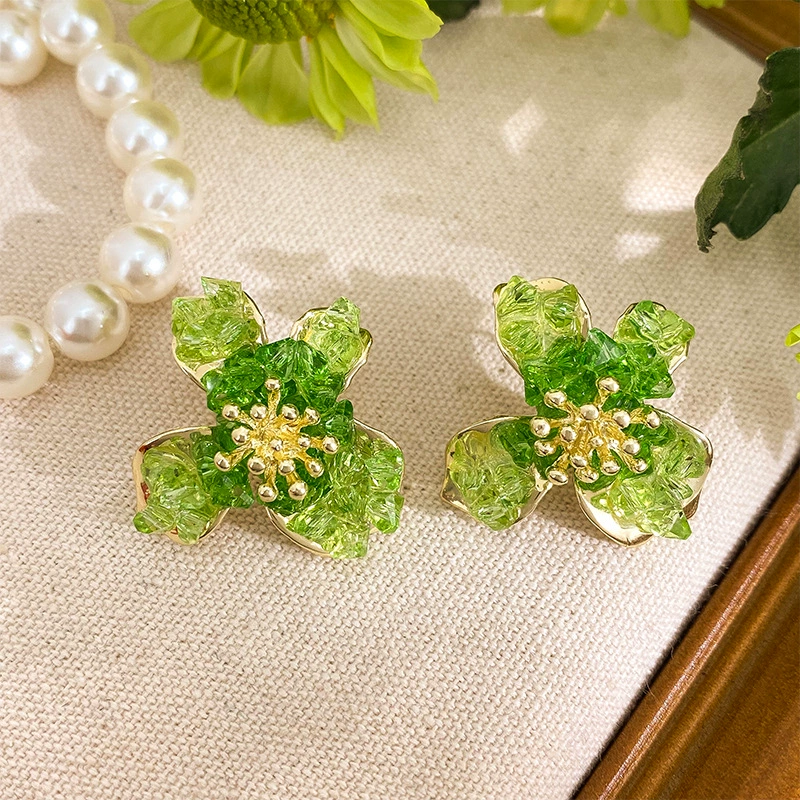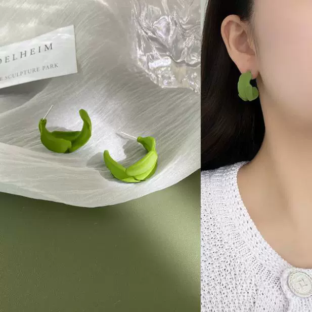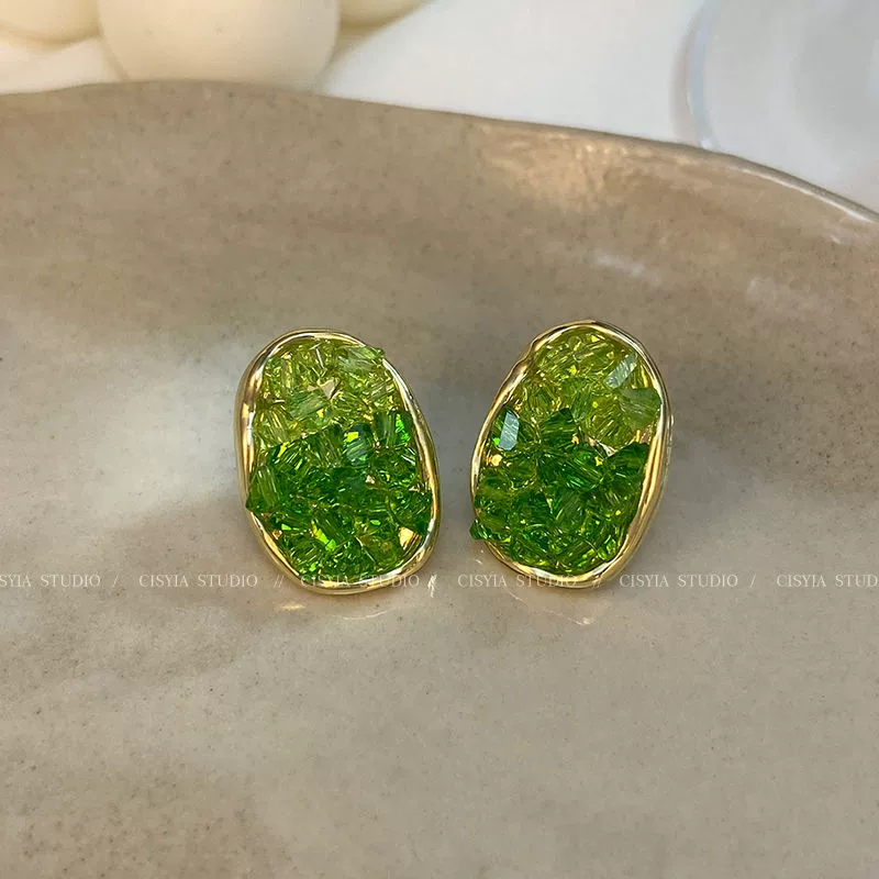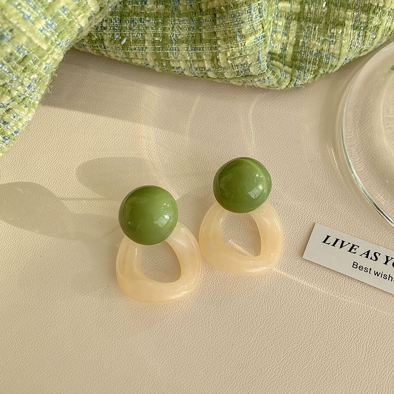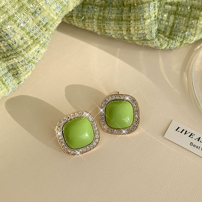 Green style earrings, elegant small earrings for celebrities with round faces, 2023 new style trendy small fresh earrings for women