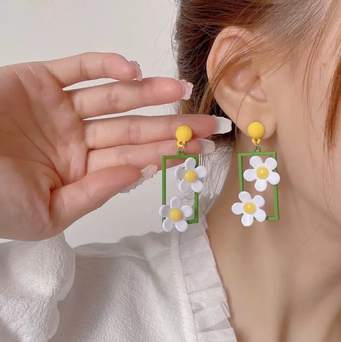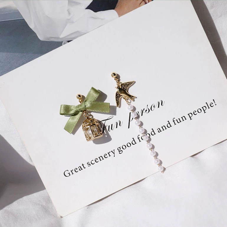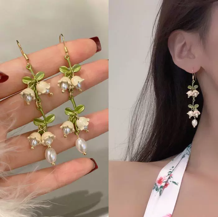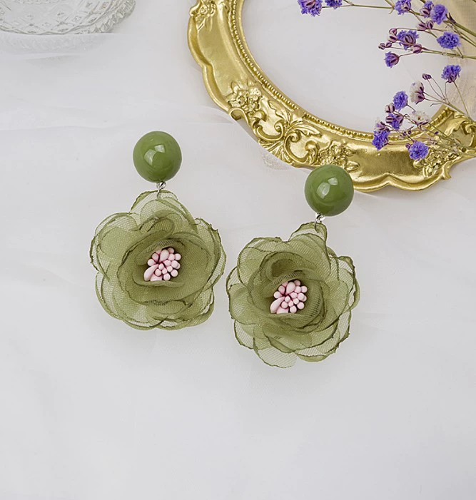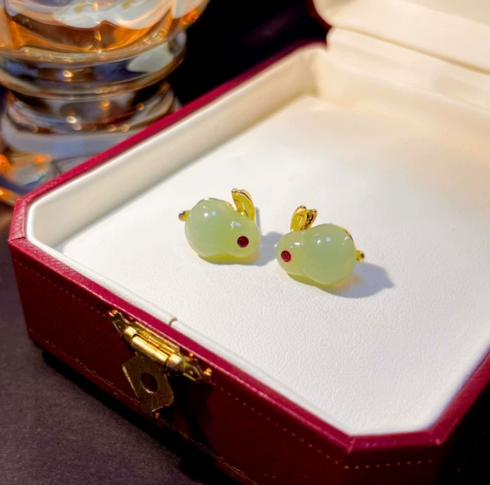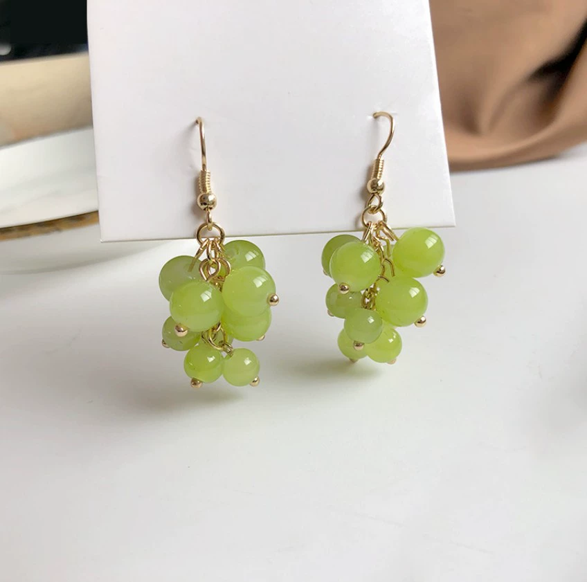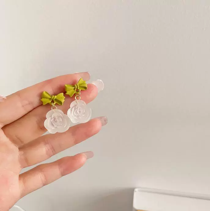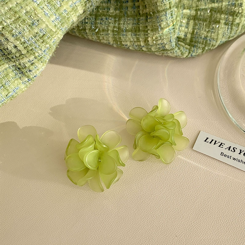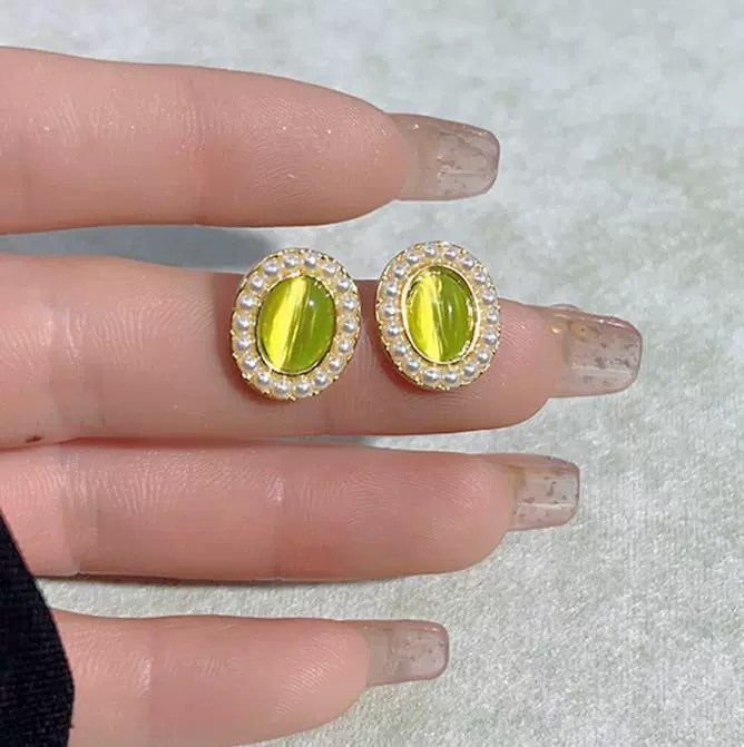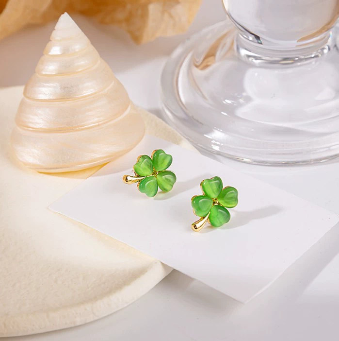 Green style earrings, elegant small earrings for celebrities with round faces, 2023 new style trendy small fresh earrings for women