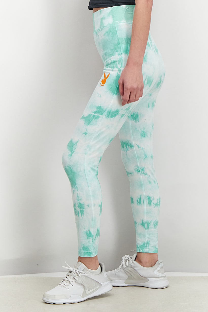 Green Tie Dye Play Boy Leggings for Petite Women.