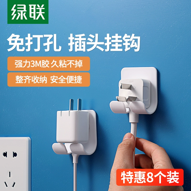 Green Union plug hook strong paste, non -trace kitchen wall -mounted power cord duplex storage storage free punch fixed device