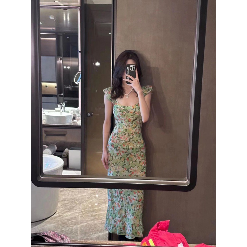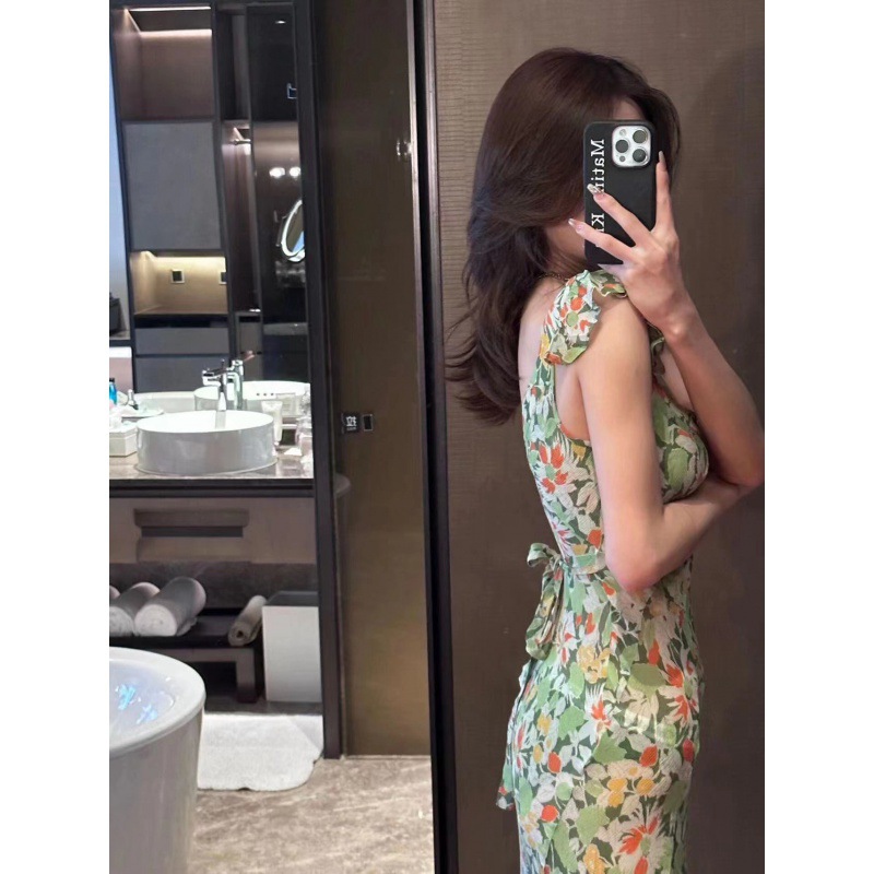 | nameOriginal | Green V-neck Floral Sling Dress Women's Summer Seaside Holiday Elegant Sexy Slim-fit Long Dress |