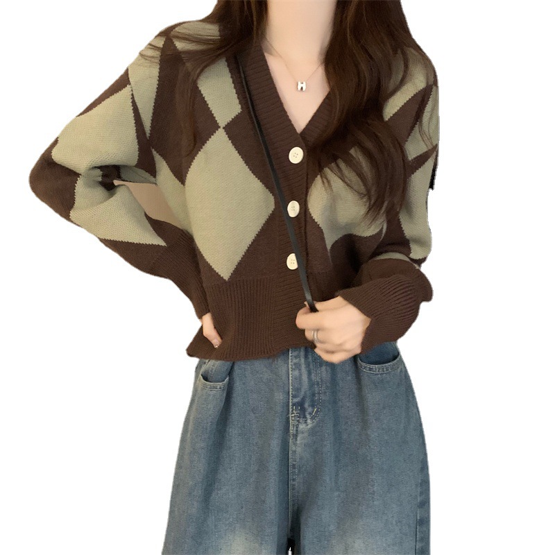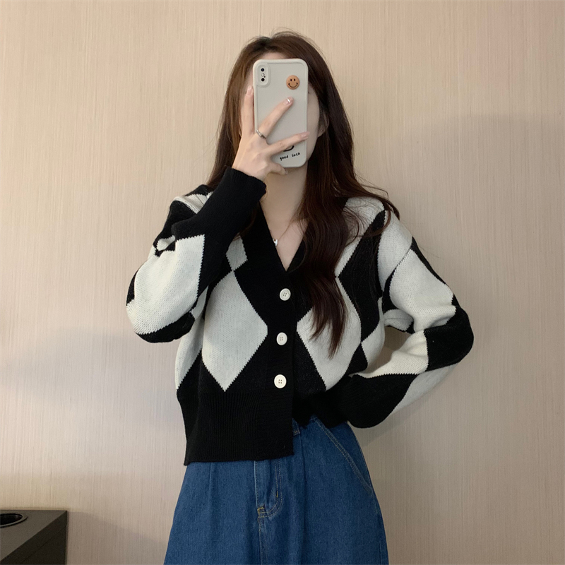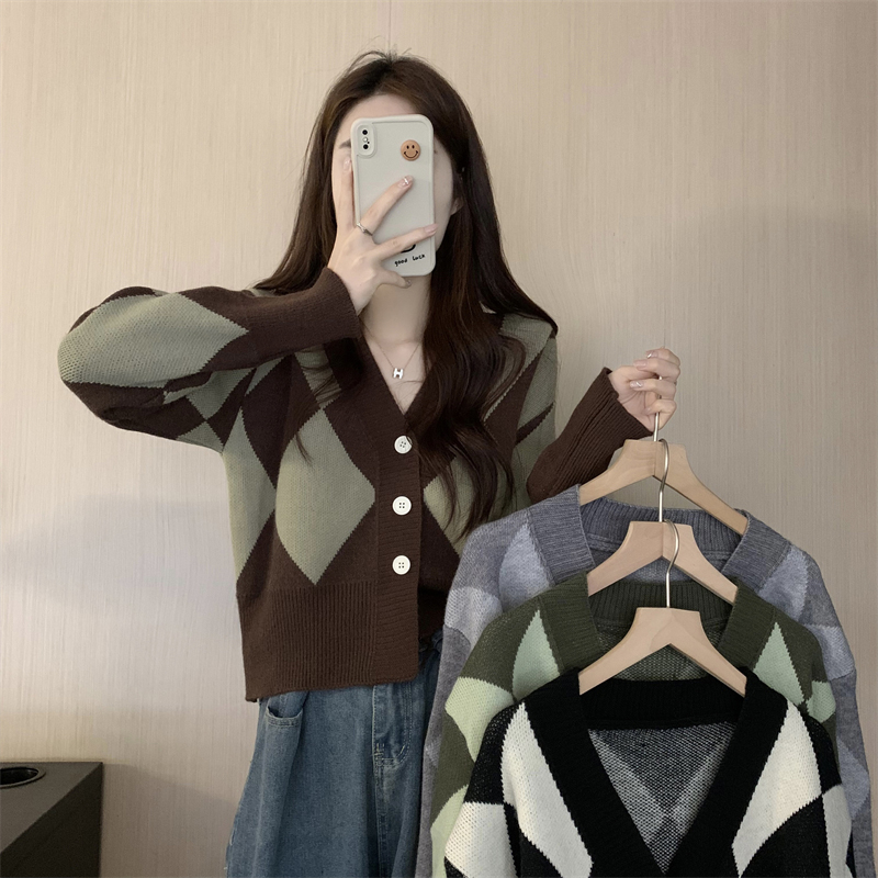 | nameOriginal | Green v-neck knitted cardigan women's autumn inner short sweater coat small French style tight waist shirt top |