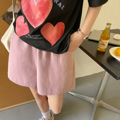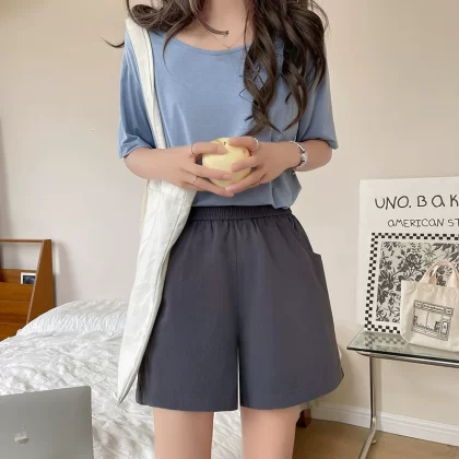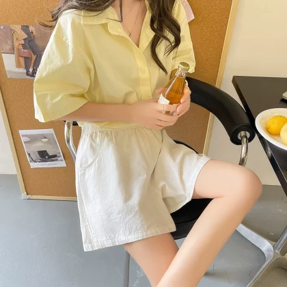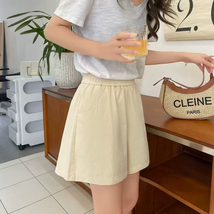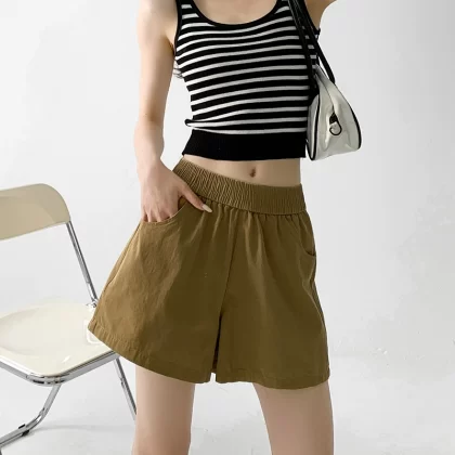 | nameOriginal | Green washed cotton thin high-waisted loose a-line shorts |