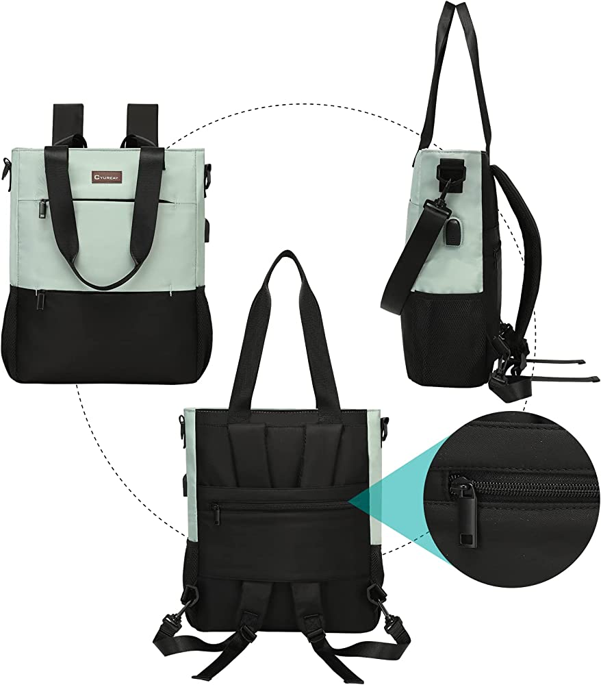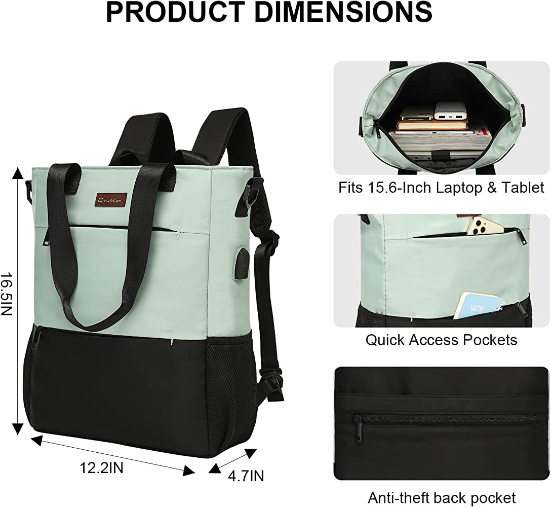 | nameOriginal | CYUREAY Convertible Backpack Tote Women Laptop Daypack Water Resistant Casual Backpack for Work Computer College School Fits 15.6-Inch Laptop & Tablet, Green |