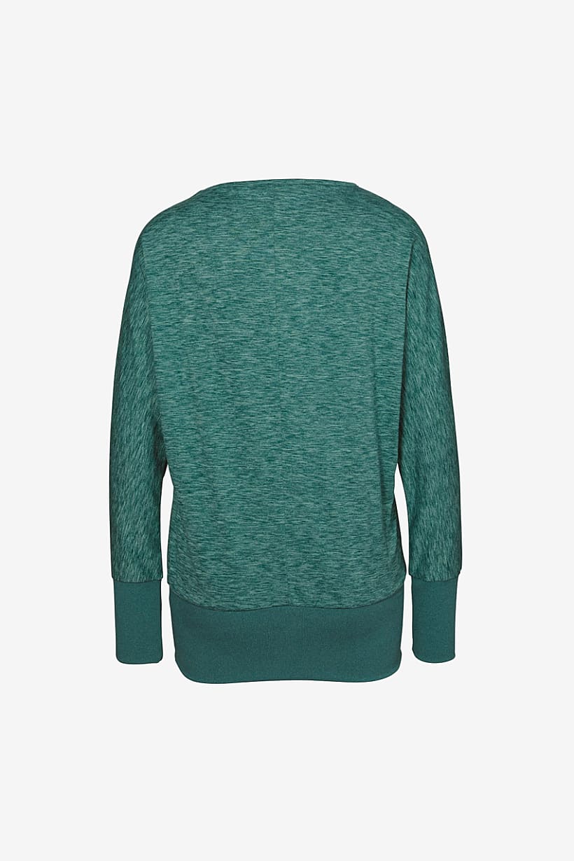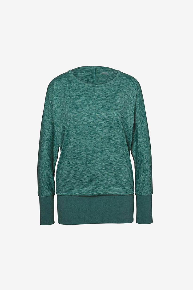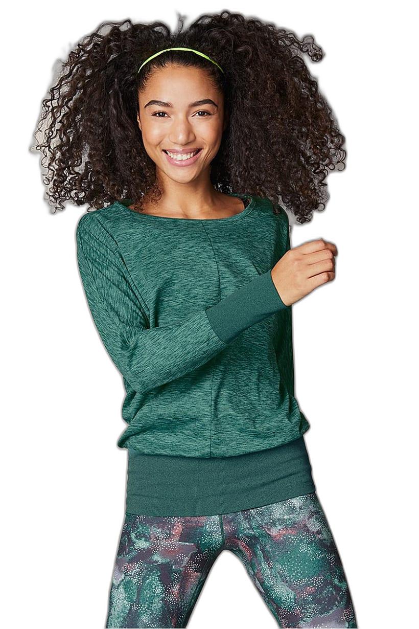 Sleeve Length : Long Sleeve, Care : Machine washable, Types of Closures : Pullover, Types of Neckline & Collar : Round neckline, Fabrics : 8% Elastane, 92% Polyester, Ideal For : Women, Color Family : Green, Sportswear Type : T-Shirt, Types of Hem : Ribbed hem, Pattern & Print : Space dye print, Types of Sleeve : Batwing sleeve, Type of Sport : Running, Occasion : Sport,