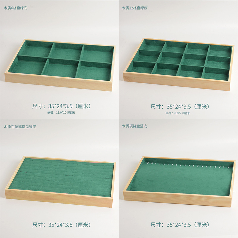 Green Wooden Jewelry Display Tray Ring Necklace Bracelet Earrings Stud Storage Jewelry Display Item Jewelry Rack