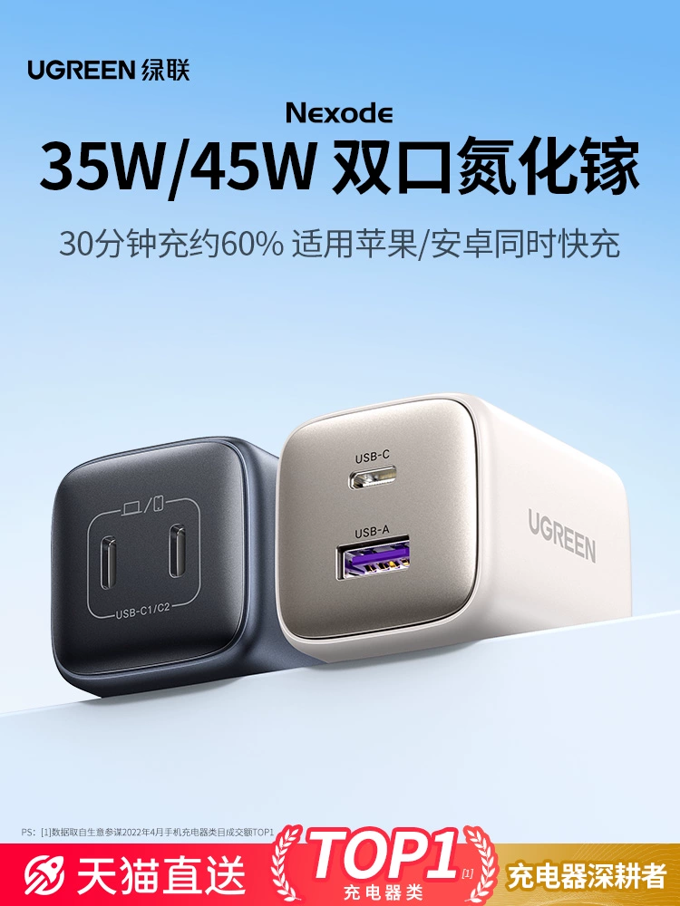 | nameOriginal | Greenlink 45W gallium nitride dual-port charger head suitable for Huawei super fast charging Samsung Apple 15promax mobile phone PD fast charging iphone set charger plug usbc multi-port A+C |