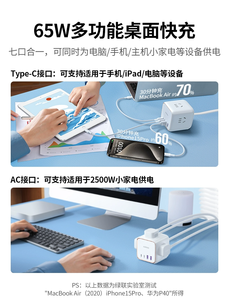 Greenlink 65W smart charging magic box usb gallium nitride strip multi-function fast charging terminal board 30W socket charger head