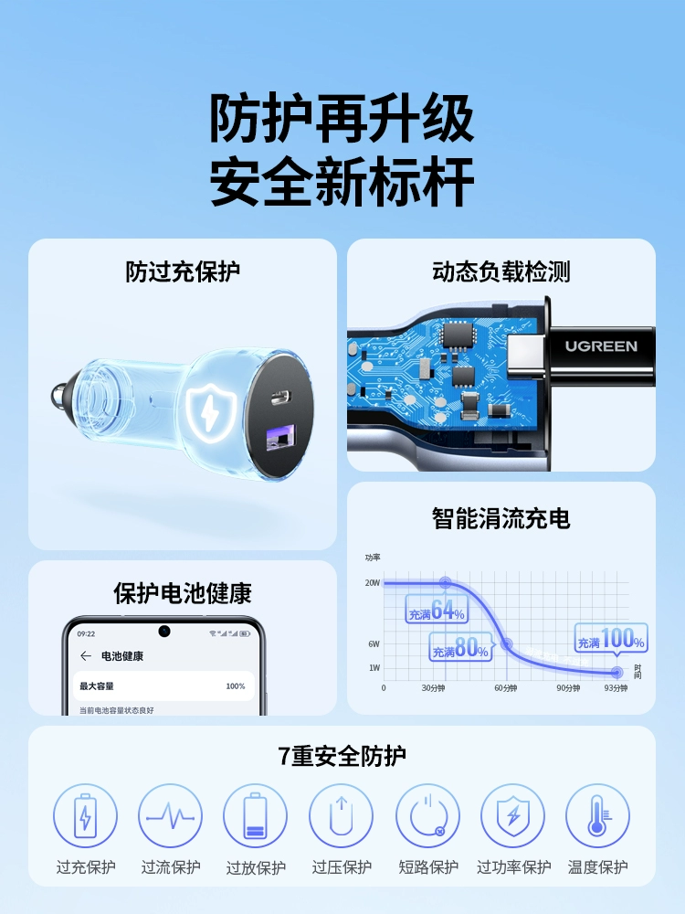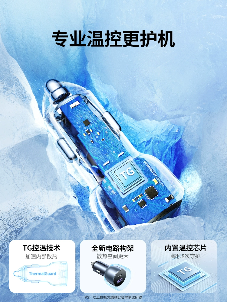 Greenlink car charger 69W suitable for Apple 16PD Xiaomi super fast charging cigarette lighter conversion plug