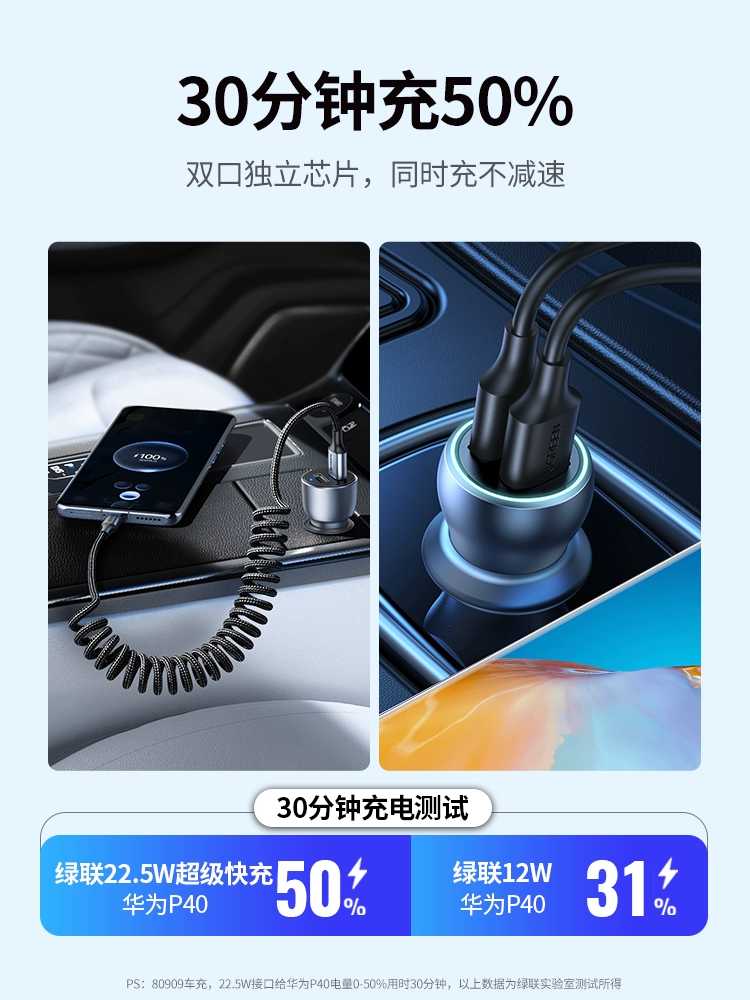 Greenlink car charger is suitable for Huawei, Apple, Xiaomi cigarette lighter conversion plug interface, car super fast charging