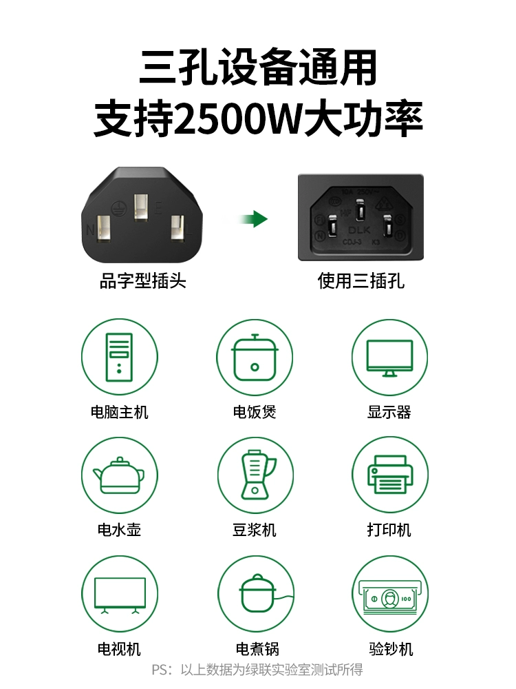 | nameOriginal | Greenlink computer rice cooker power cord three-hole 3-core desktop host monitor screen printing electric cooker rice cooker plug |