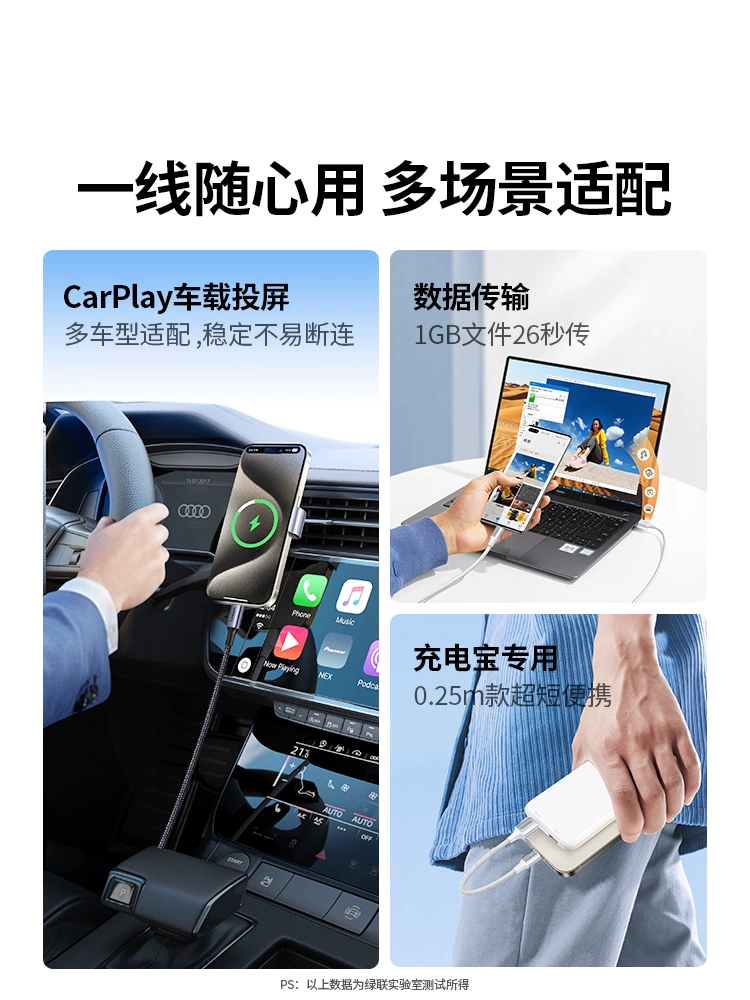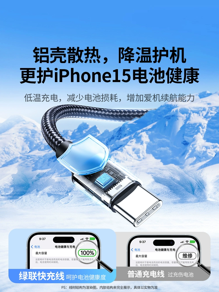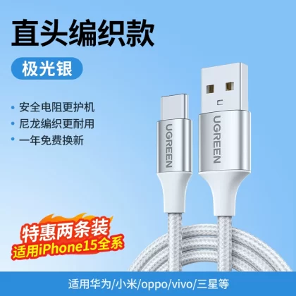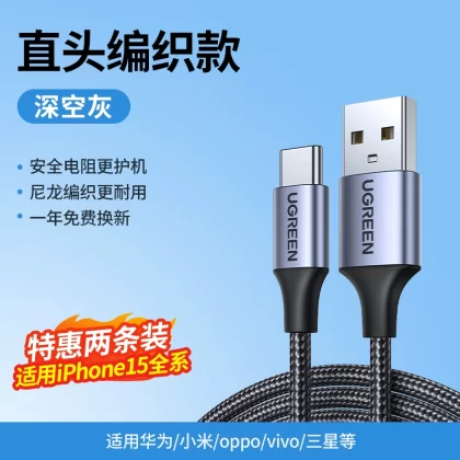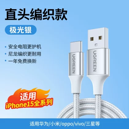Greenlink iphone15promax charging cable carplay data cable suitable for Apple oppo Samsung vivo mobile phone usb to typec fast charging treasure car braided type+c short tpyec