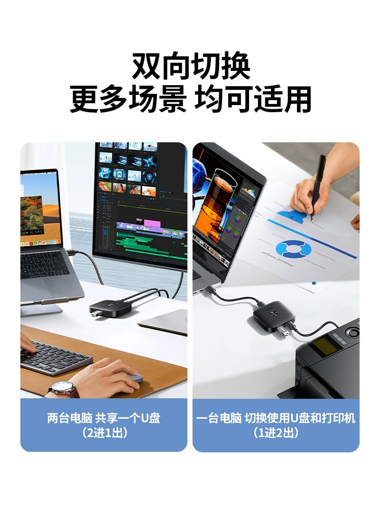 Green Union Printer shared device network rotor keyboard Mouse data cable connects two computers to switch to two -in -one -out, one -point, two double USB semiper