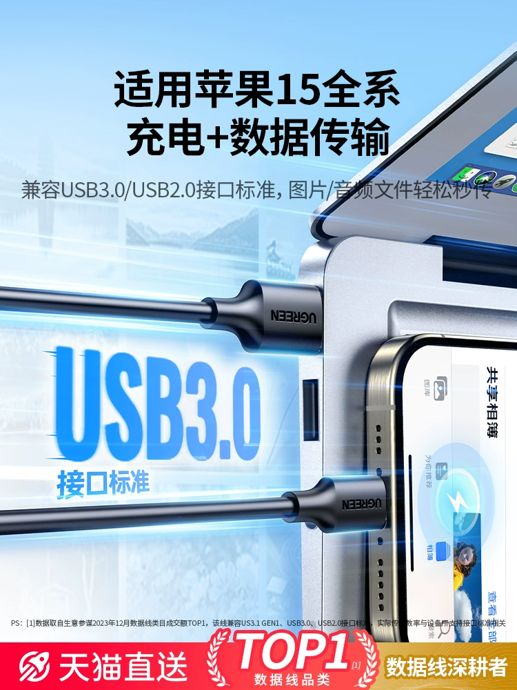 | nameOriginal | Greenlink USB3.0 to typec data cable iPhone15 connected to high-speed mobile hard disk box iPadPro computer transmission suitable for Apple CarPlay Huawei switch mobile phone fast charging USB-C |