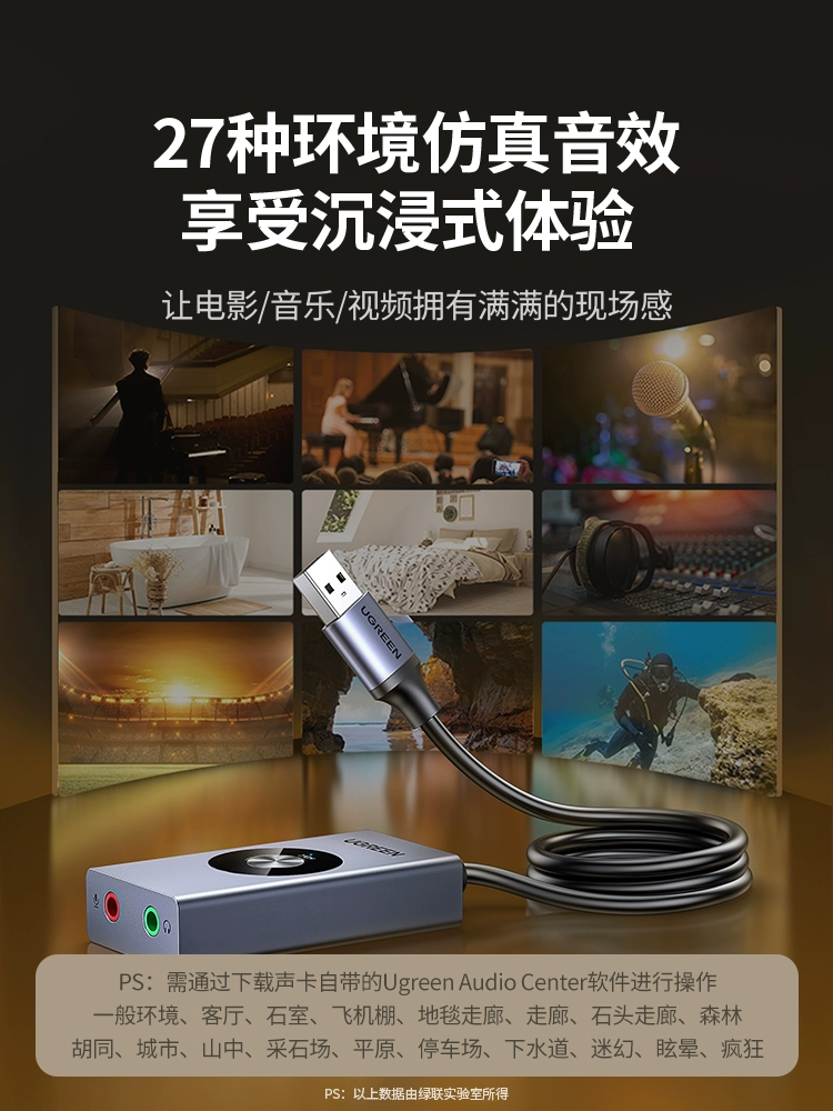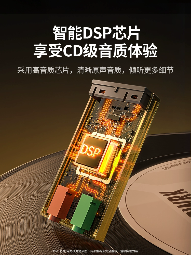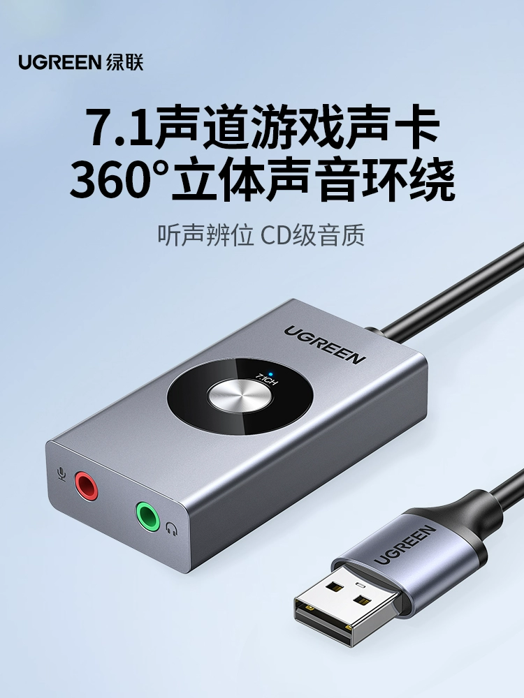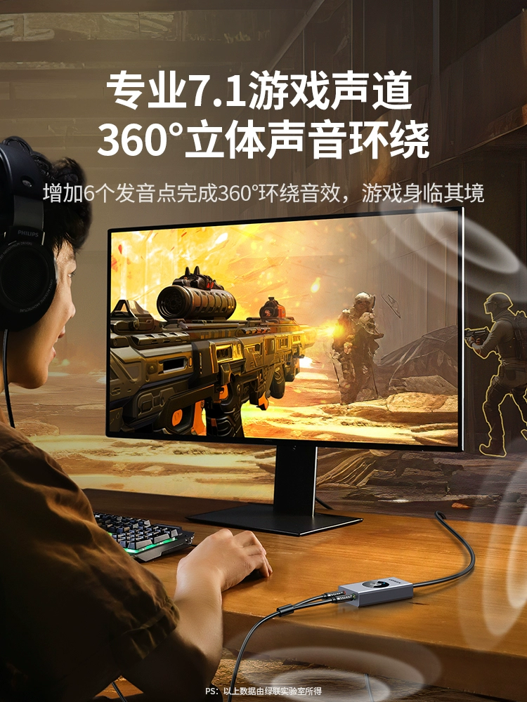 Greenlink USB7.1 external sound card connected to desktop laptop game voice changer headset microphone independent