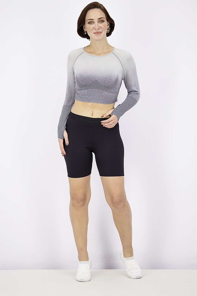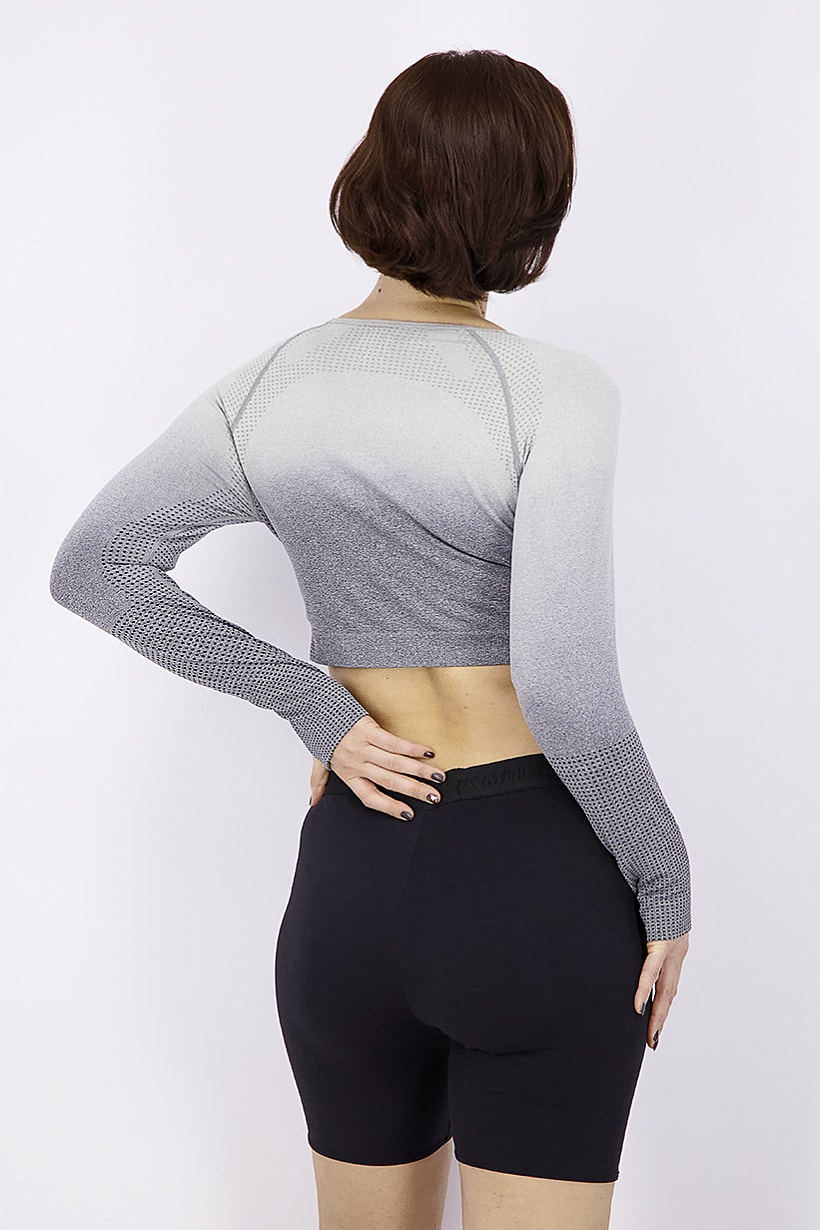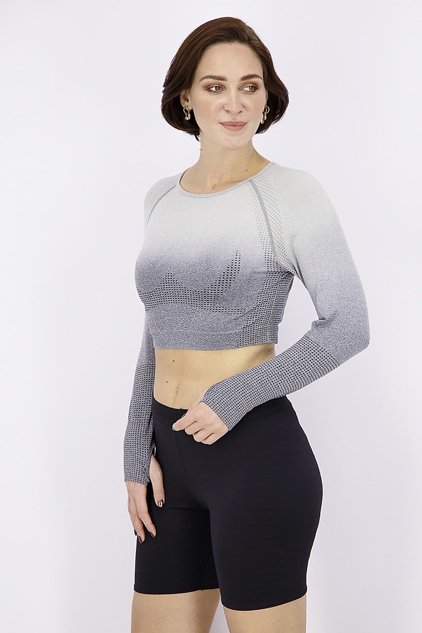 Grey and Black Cropped Tops with Allover Long Sleeves for Women.