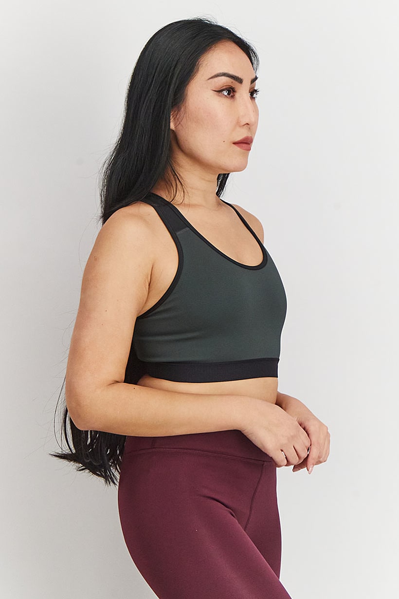 | nameOriginal | Women Colorblock Brand Logo Sports Bra, Grey and Black |