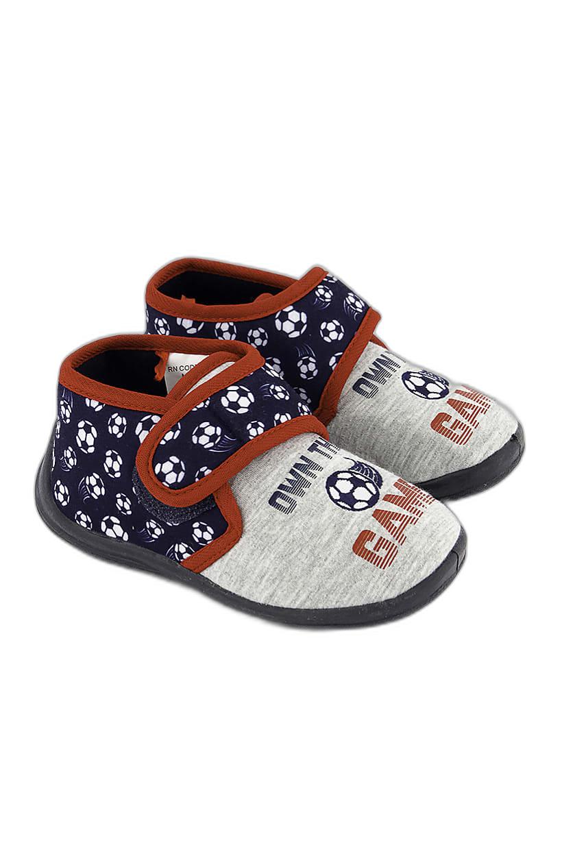 This product is suitable for boys and features a lightly padded insole for added comfort. It has a velcro closure and a closed toe design with a rubber sole. There are no character types associated with this product. Please note that the color of the product may vary slightly due to photographic lighting sources or monitor settings. It is ideal for casual occasions and made of fabric material in a grey color family.