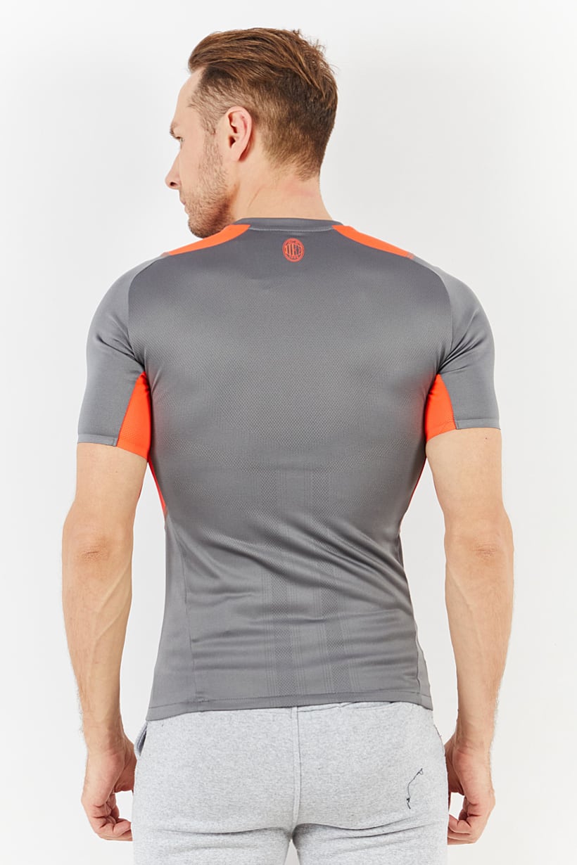 | sub_Categories | Men Clothing, Sportswear, men slim fit short sleeve training t shirts grey and neon orange |