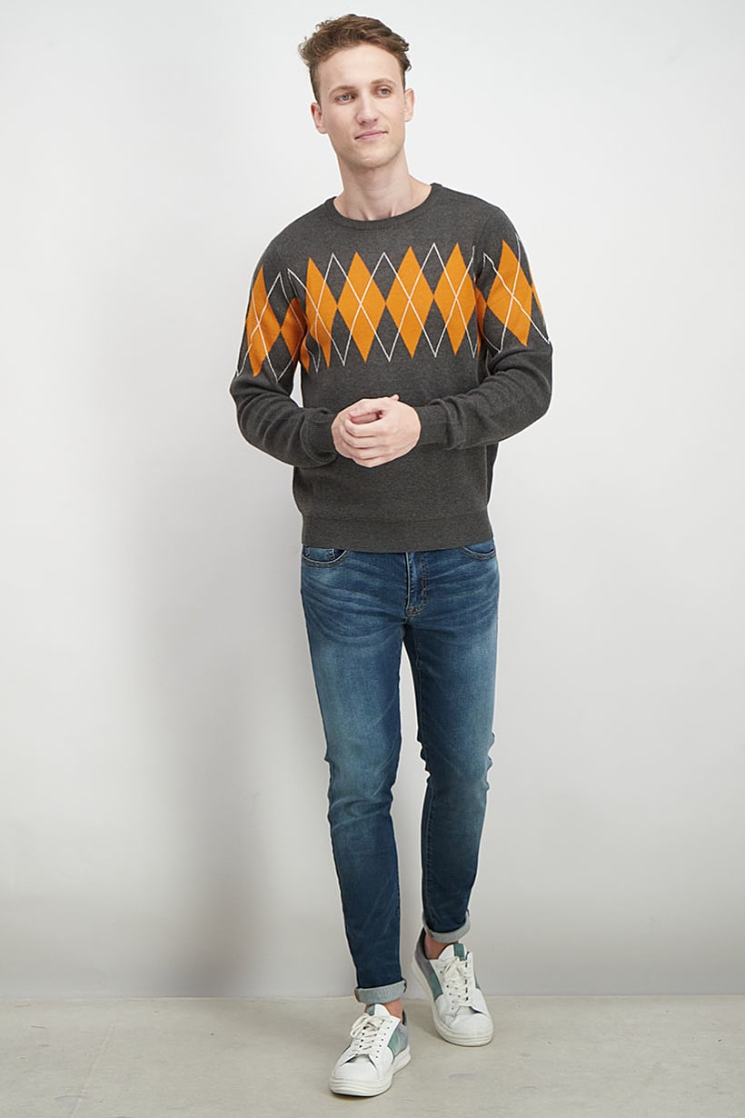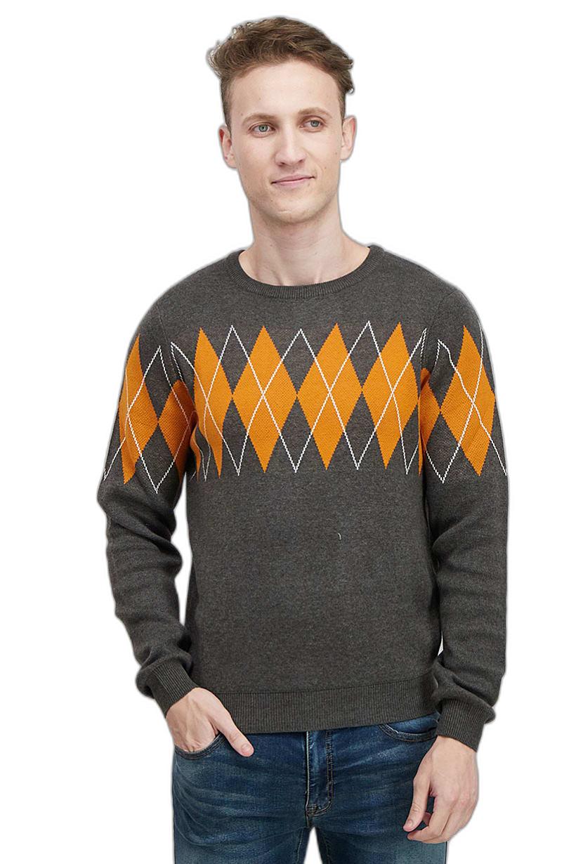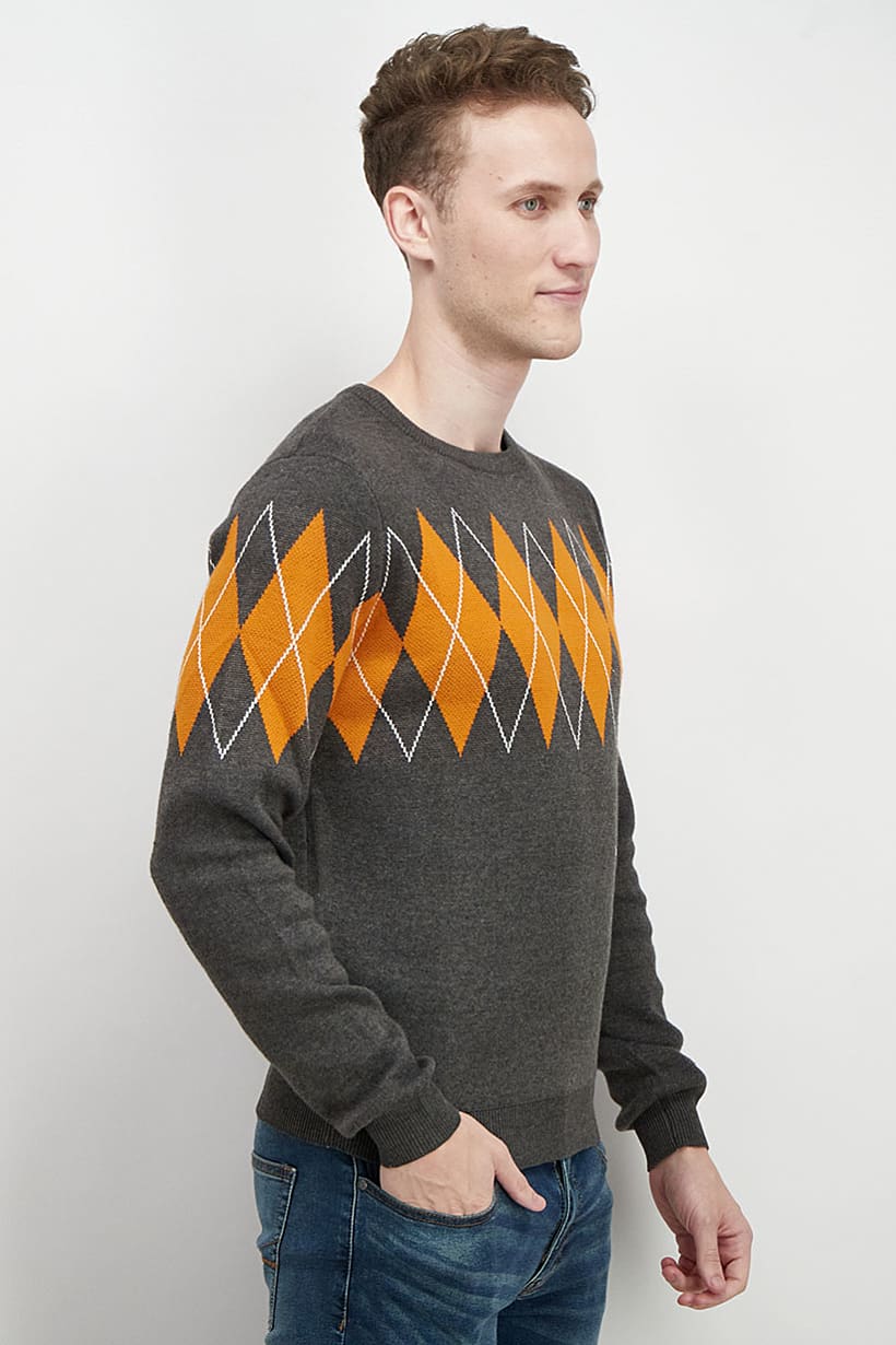 | nameOriginal | Men Sportswear Fit Knit SweaT-shirt, Grey and Orange |
