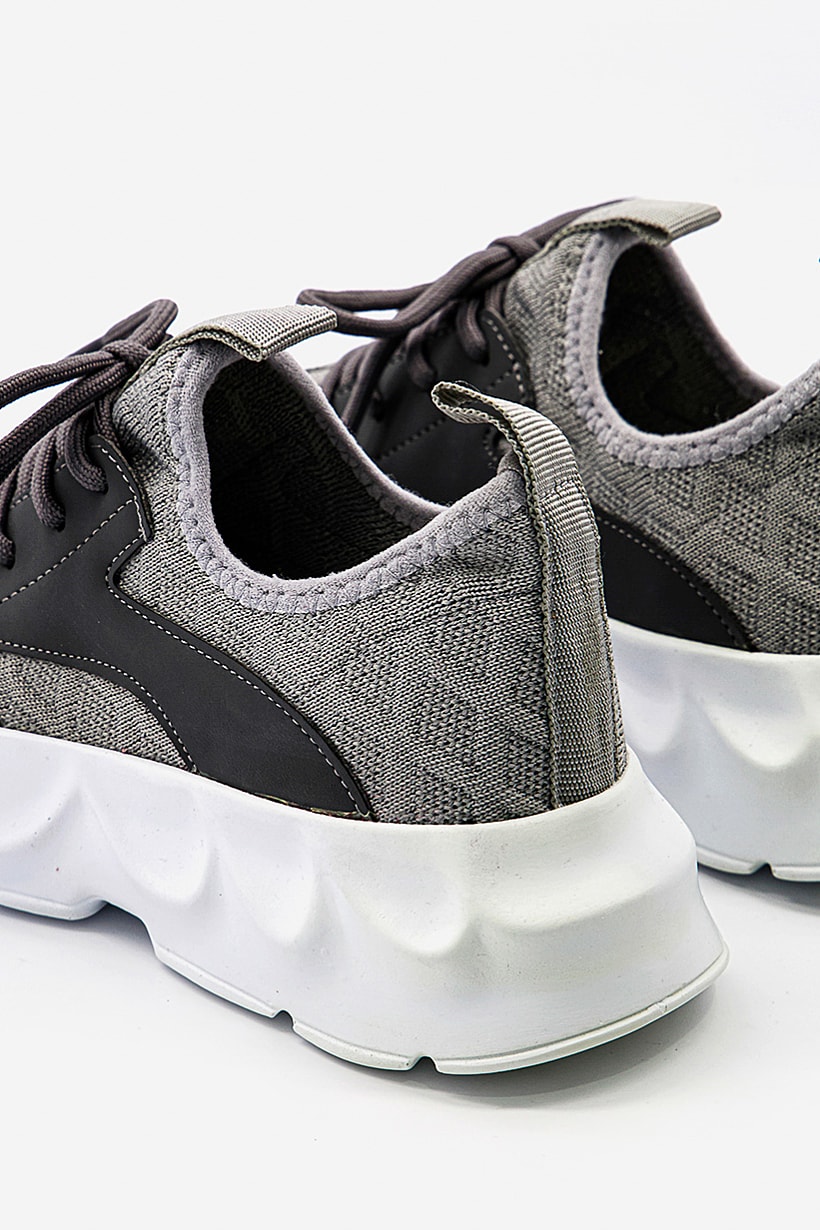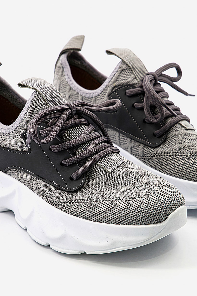 Grey and White Casual Shoes for Women with Lace-Up Design.