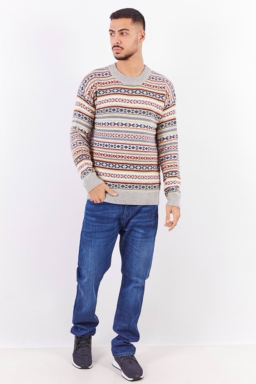 | nameOriginal | Men Crew Neck Aztec Knit Sweater, Grey |