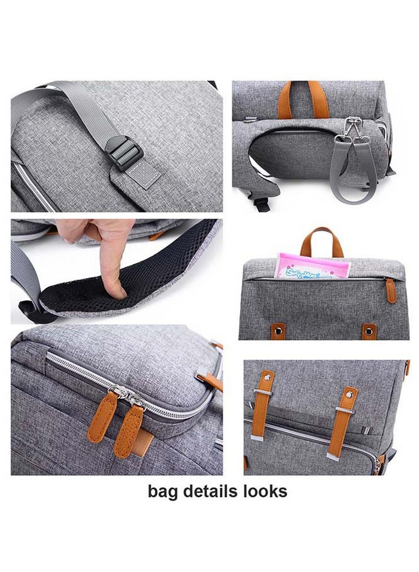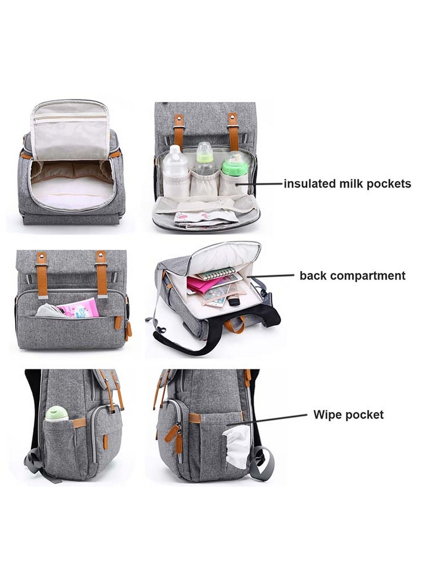 | nameOriginal | Baby Diaper Bag with Diaper Changing Pad and Insulated Milk Bottle Pockets- Grey |