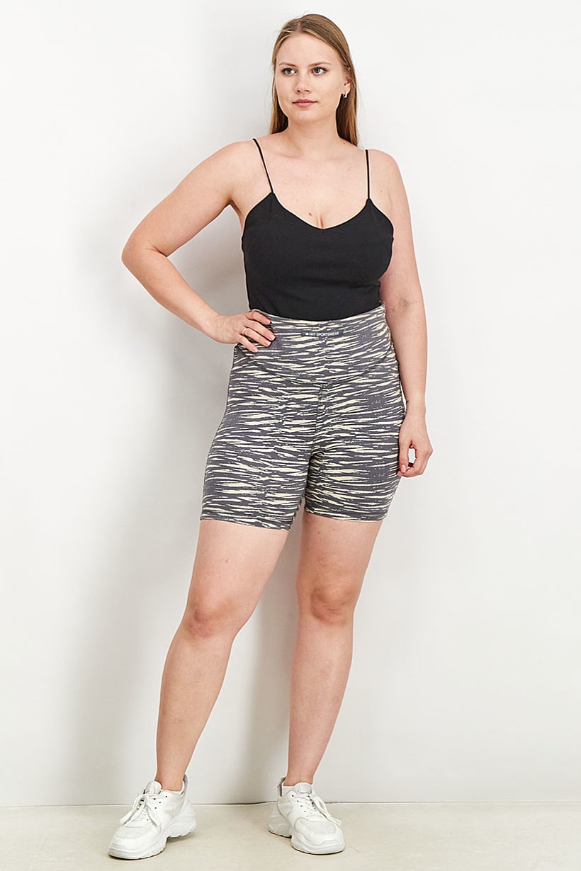 This product is easy to care for as it is machine washable. It has a sportswear fit and is available in US sizes. The fabric is light and made of 91% cotton and 9% elastane. It is suitable for training and has an abstract print. Please note that the product color may appear slightly different due to photographic lighting sources or monitor settings. These shorts are part of the grey color family.
