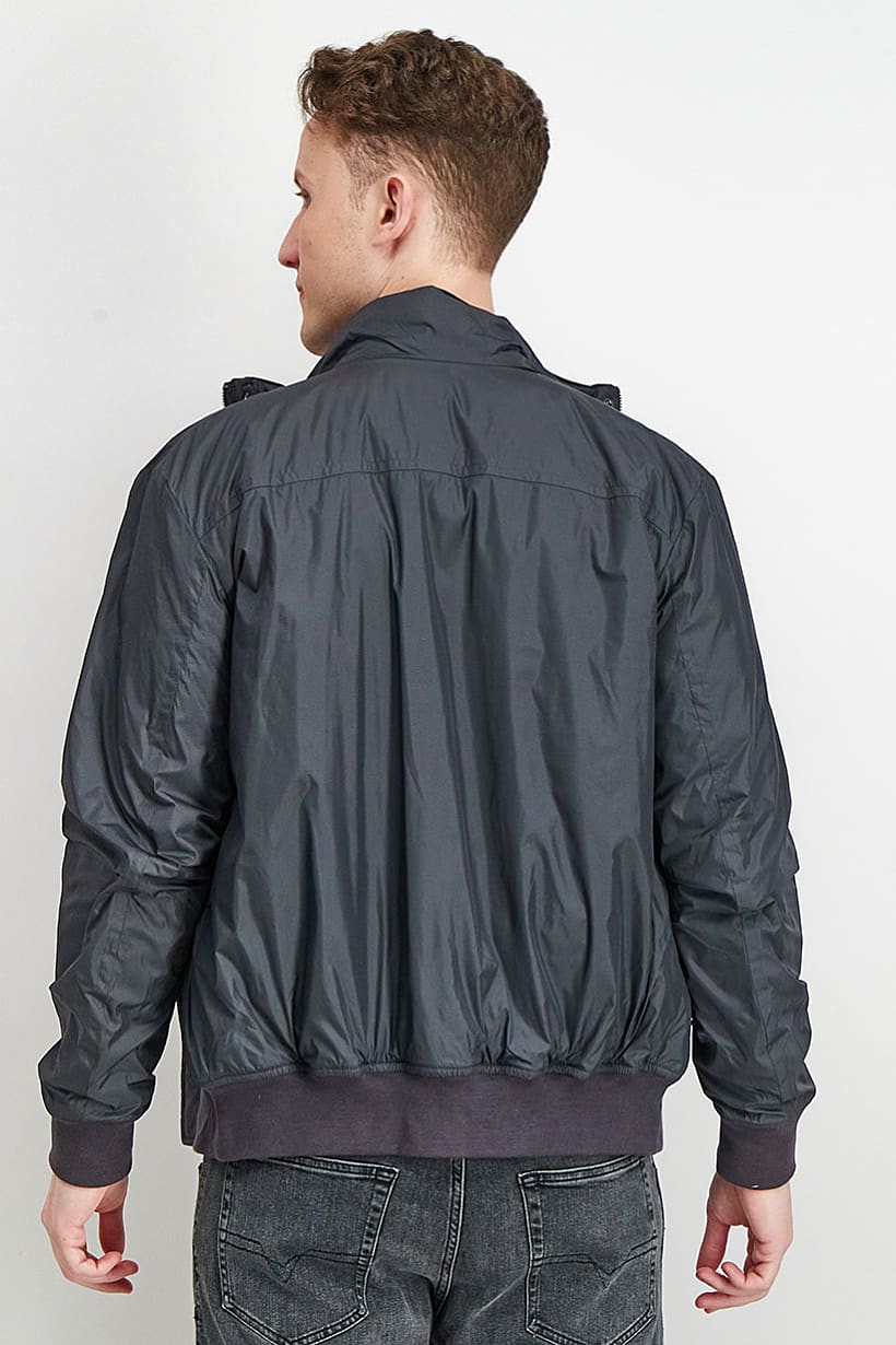 Grey Bomber Jacket with Embroidered Logo for Men’s Sportswear.