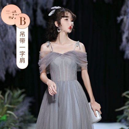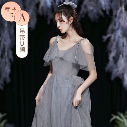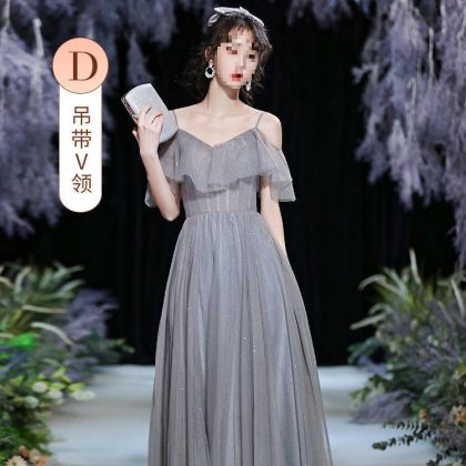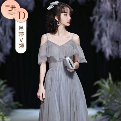 | nameOriginal | Grey Bridesmaid Dress Sisters 2022 New Summer Mori Super Fairy Ins High-end Simple Slimming Dress |