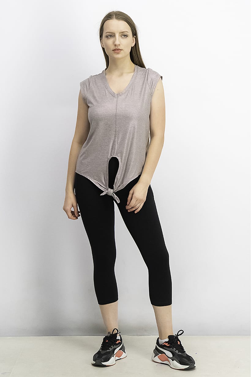 Grey Cap Sleeve Tie Hem Top for Women’s Sports Fit.