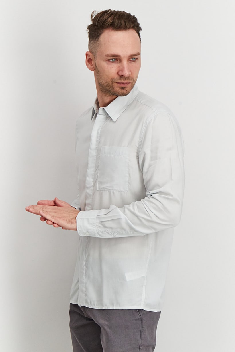 | descriptionOriginal | Care : Machine washable, Fit : Regular fit, Size shown : International, Types of Hem : Curved hem, Types of Neckline & Collar : Pointed collar , Fabrics : 100% Modal, Occasion : Casual, Pattern & Print : Plain/Solid, Types of Closures : Button, Color Family : Grey, Sleeve Length : Long Sleeve, Disclaimer : Product color may slightly vary due to photographic lighting sources or your monitor settings., |