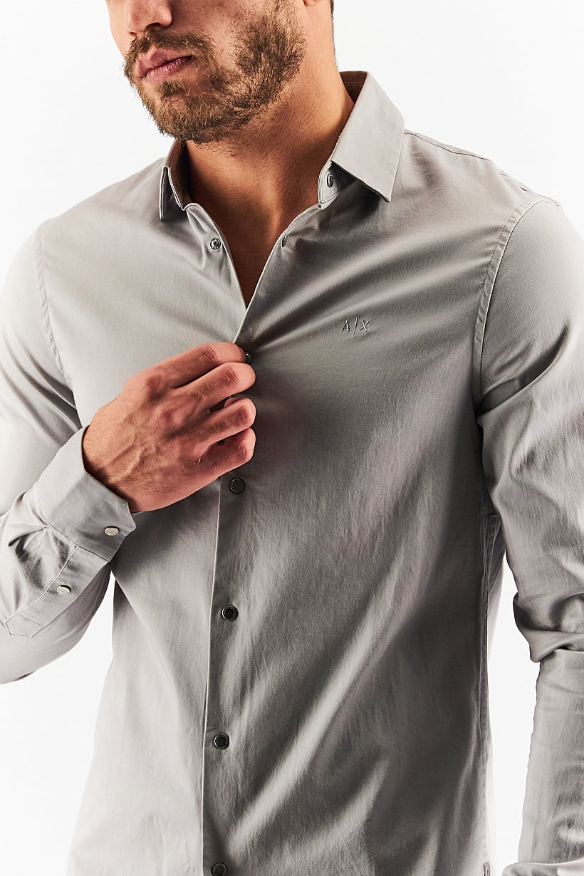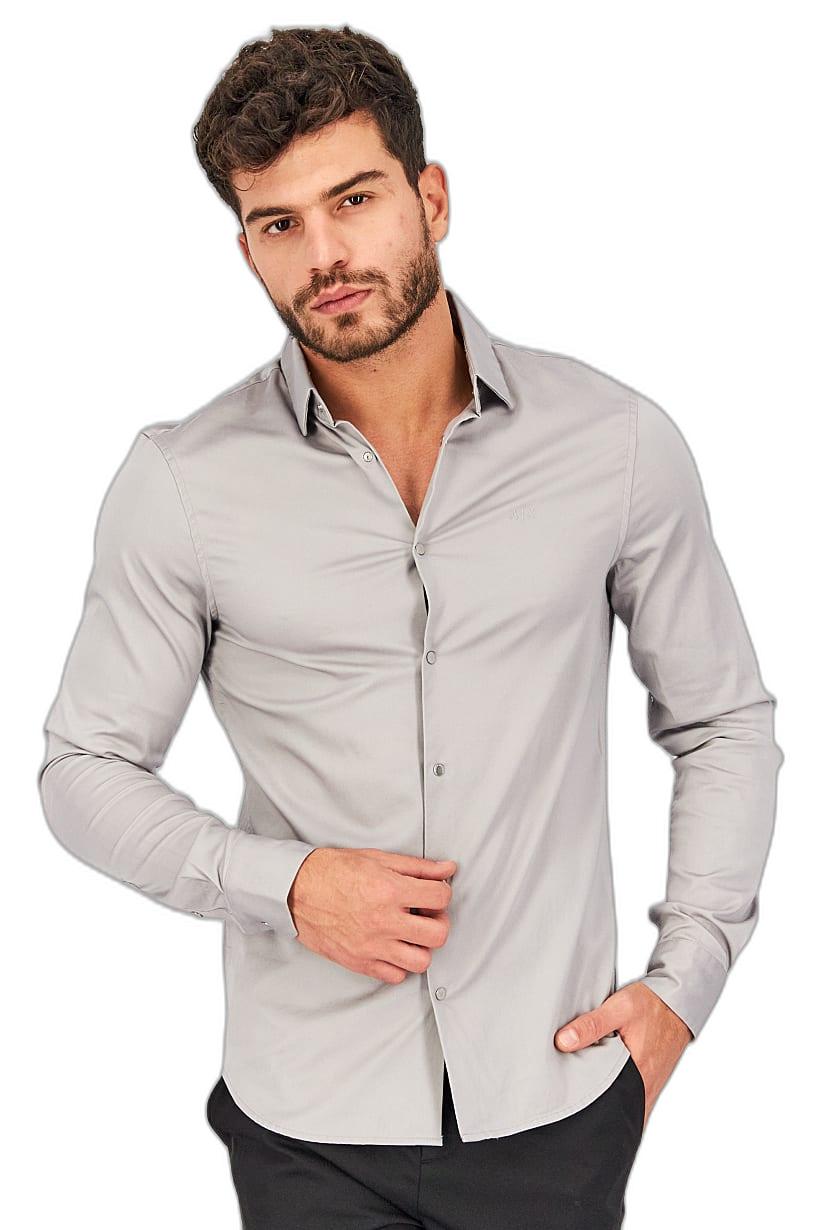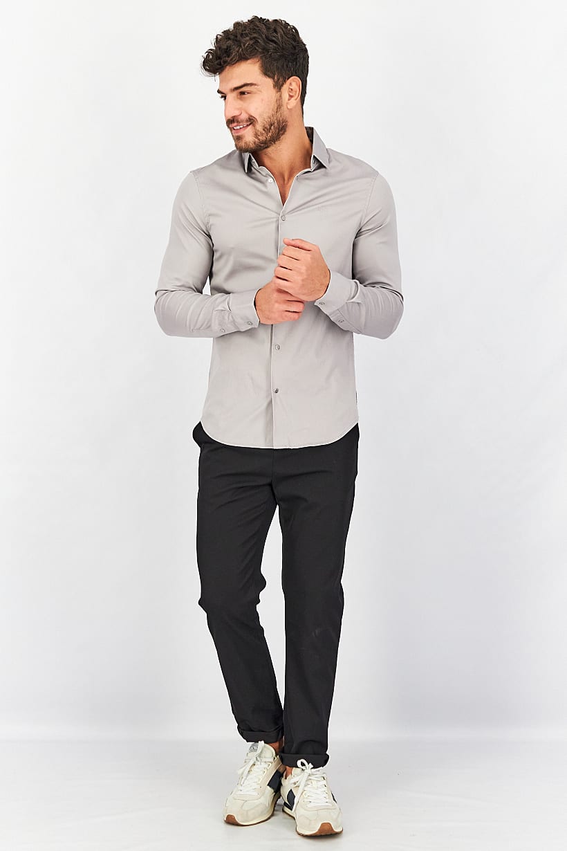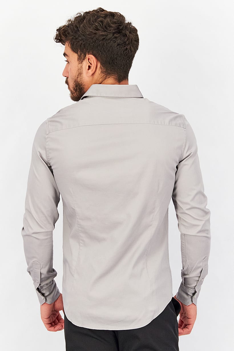 Care : Machine washable, Fit : Slim fit, Size shown : International, Sleeve Length : Long Sleeve, Types of Hem : Curved hem, Types of Neckline & Collar : Spread collar , Disclaimer : Product color may slightly vary due to photographic lighting sources or your monitor settings., Fabrics : 97% Cotton, 3% Elastane, Occasion : Casual, Pattern & Print : Plain/Solid, Types of Closures : Button, Color Family : Grey,