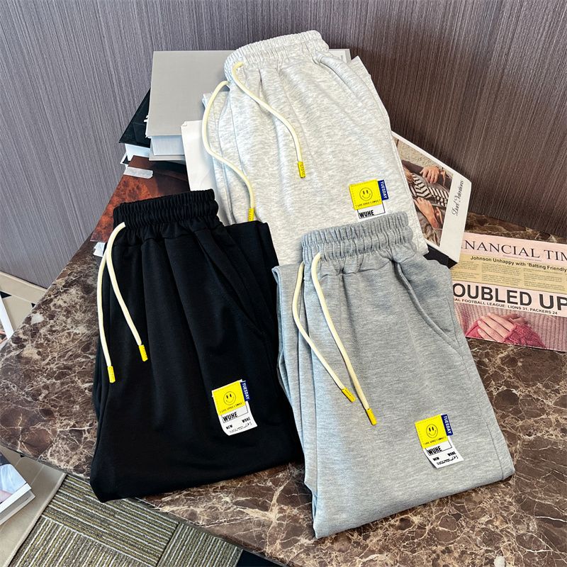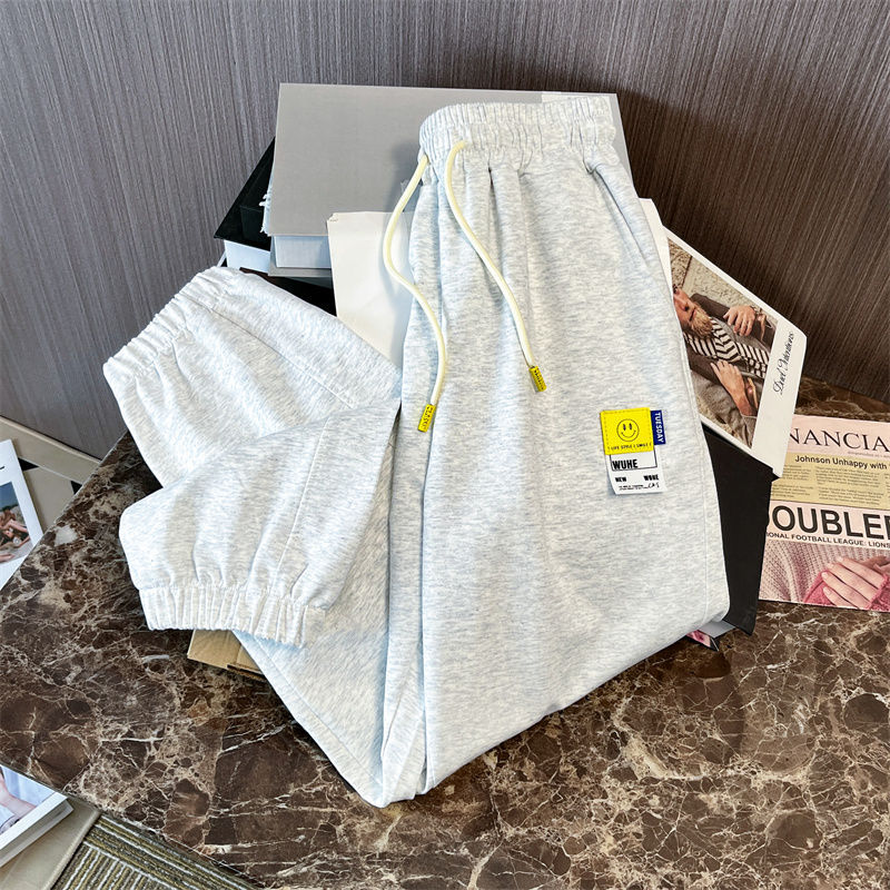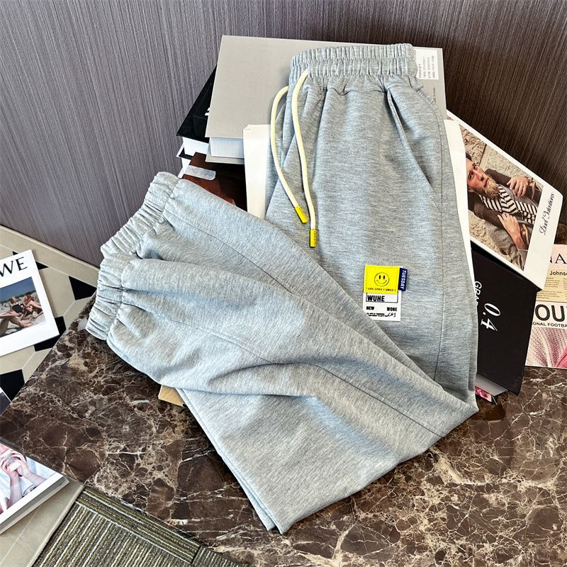 Grey Casual Sports Pants for Men and Women Summer Design Sense Loose All-match Leg Pants Thin Cropped Pants