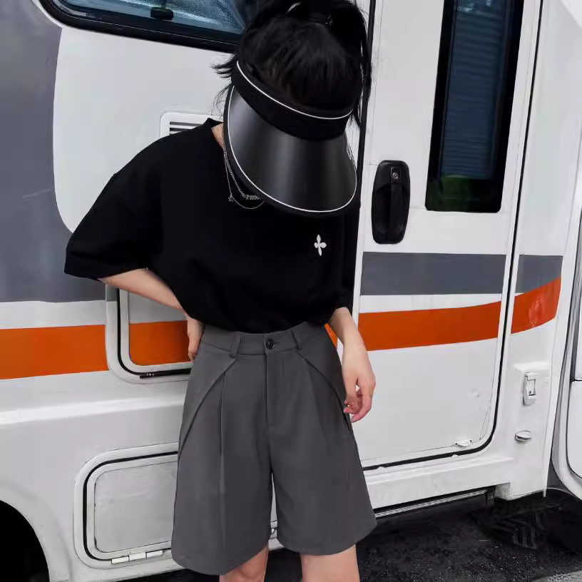 | nameOriginal | Grey Casual Suit Shorts A- shape Thin High Waist Wide-leg Pants Loose Slimming Half-length Pants |