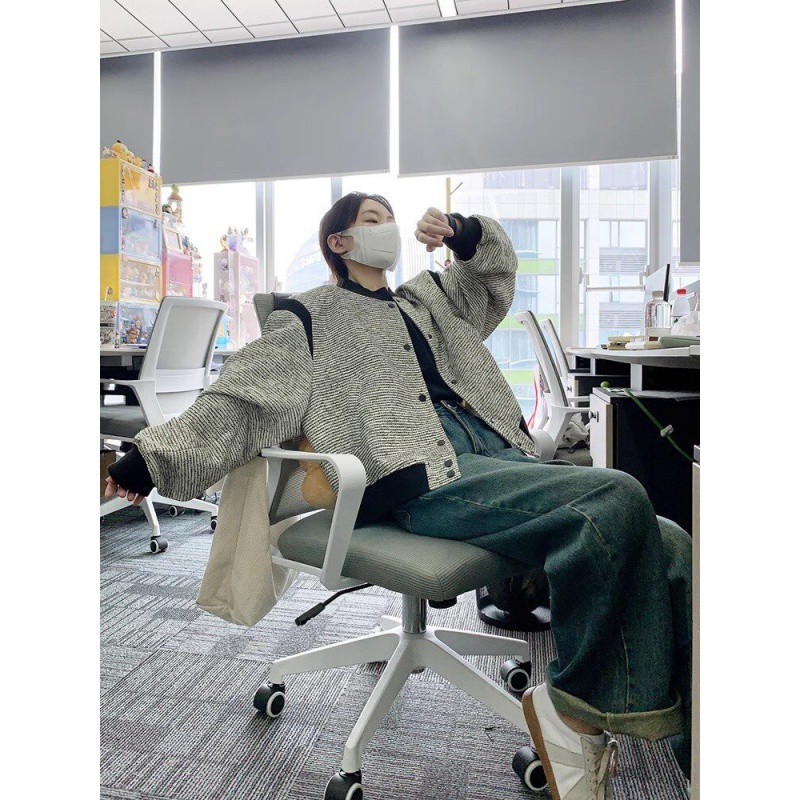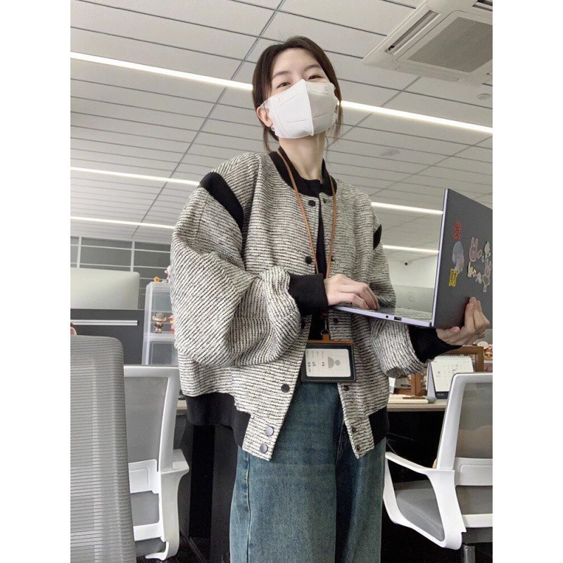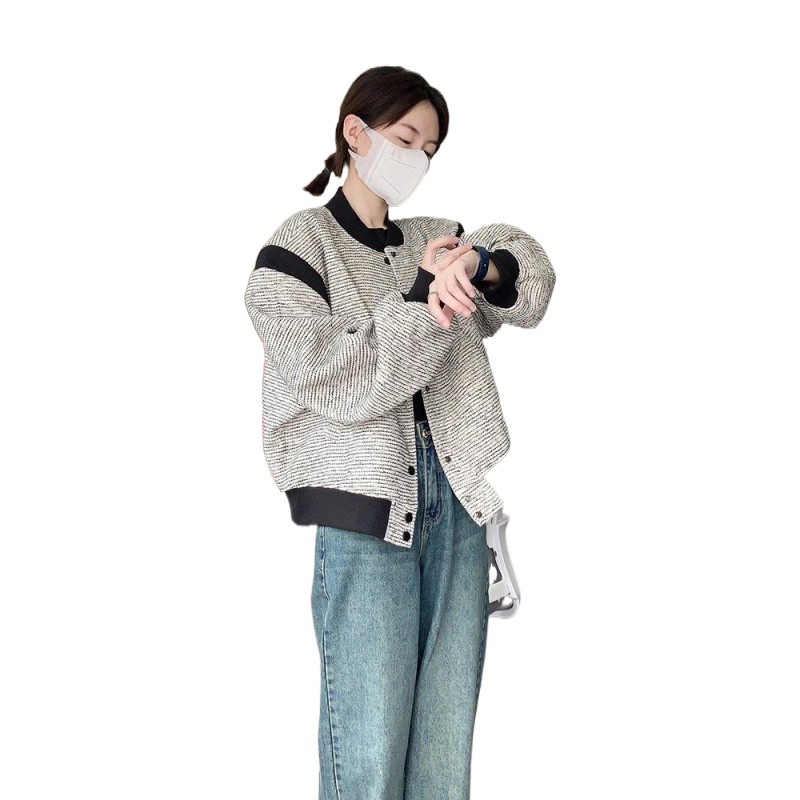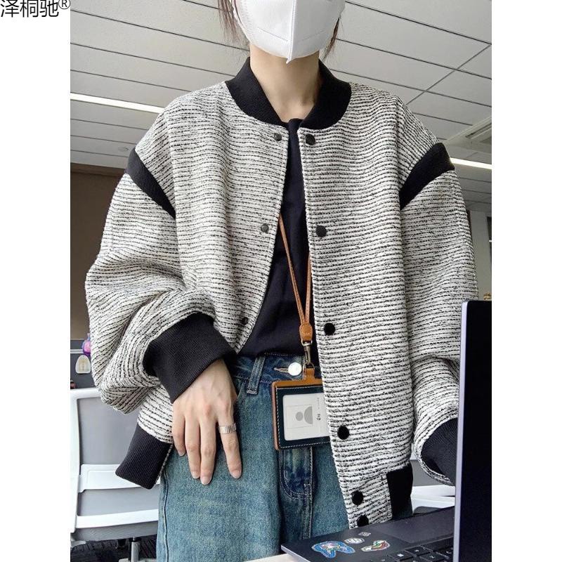 Grey Chanel Style Short Coat Women’s Spring and Autumn High-end Design Sense Niche Baseball Suit Jacket Cardigan Jacket