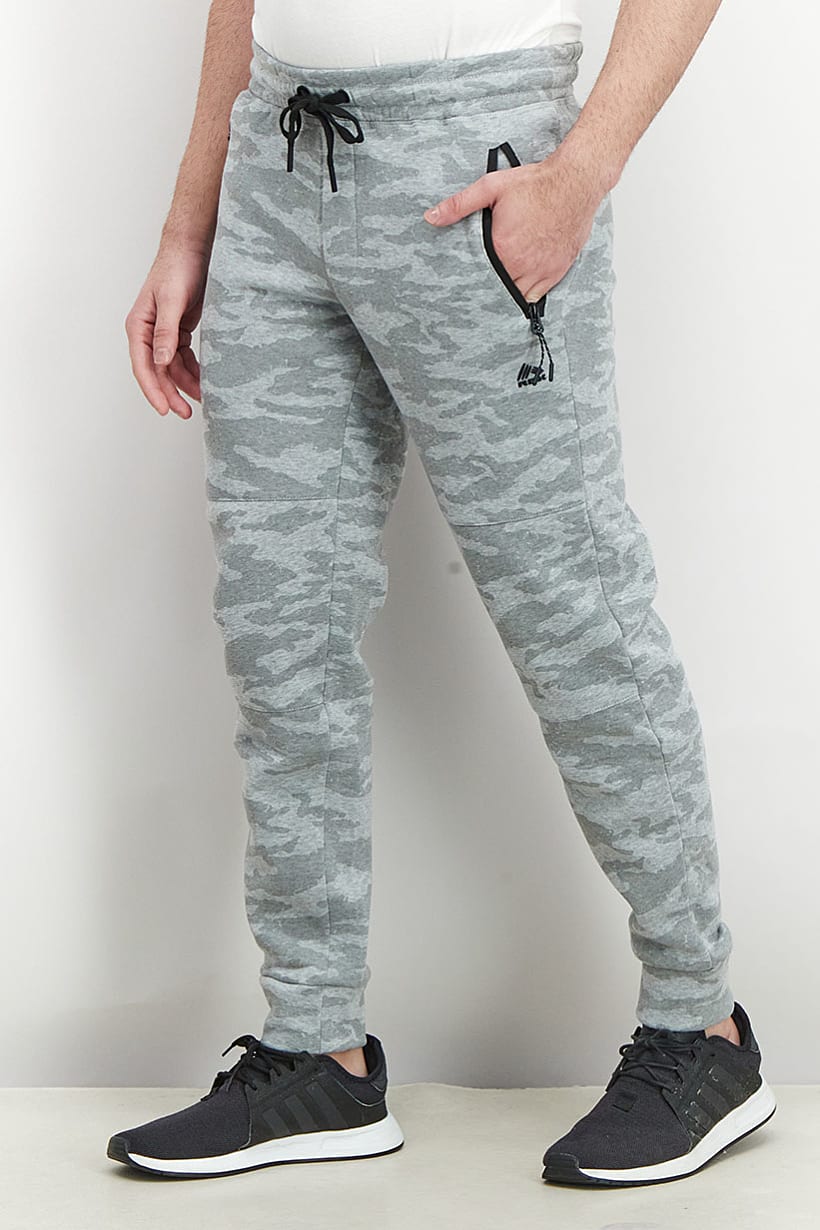 Bottom Hem : Straight, Care : Machine washable, Fit : Sportswear Fit, Size shown : International, Thickness : Light, Type of Sport : Training, Bottom Closure : Drawstring, Fabrics : 60% Cotton, 40% Polyester, Pattern & Print : Camouflage, Sportswear Type : Track Pants, Color Family : Grey,