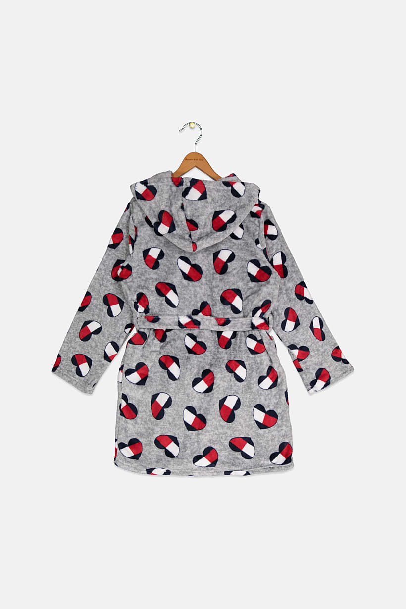 Grey Combo Hooded Robe for Girls with All-Over Print.
