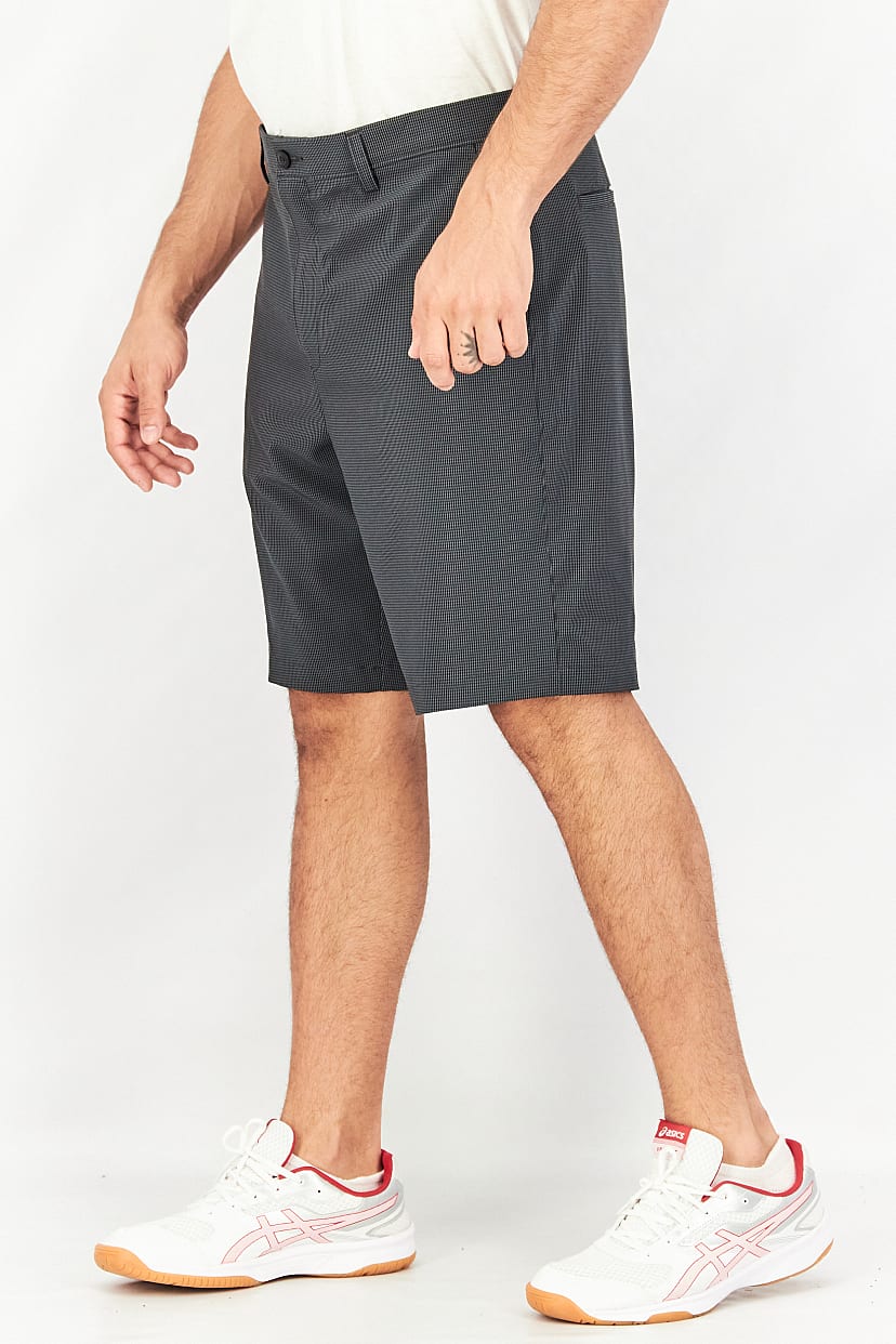 Care : Machine washable, Fit : Sportswear Fit, Size shown : Inches, Thickness : Light, Type of Sport : Golf, Bottom Closure : Button, Disclaimer : Product color may slightly vary due to photographic lighting sources or your monitor settings., Fabrics : 94% Polyester, 6% Elastane, Occasion : Sport, Pattern & Print : Plaid, Sportswear Type : Shorts, Color Family : Grey,