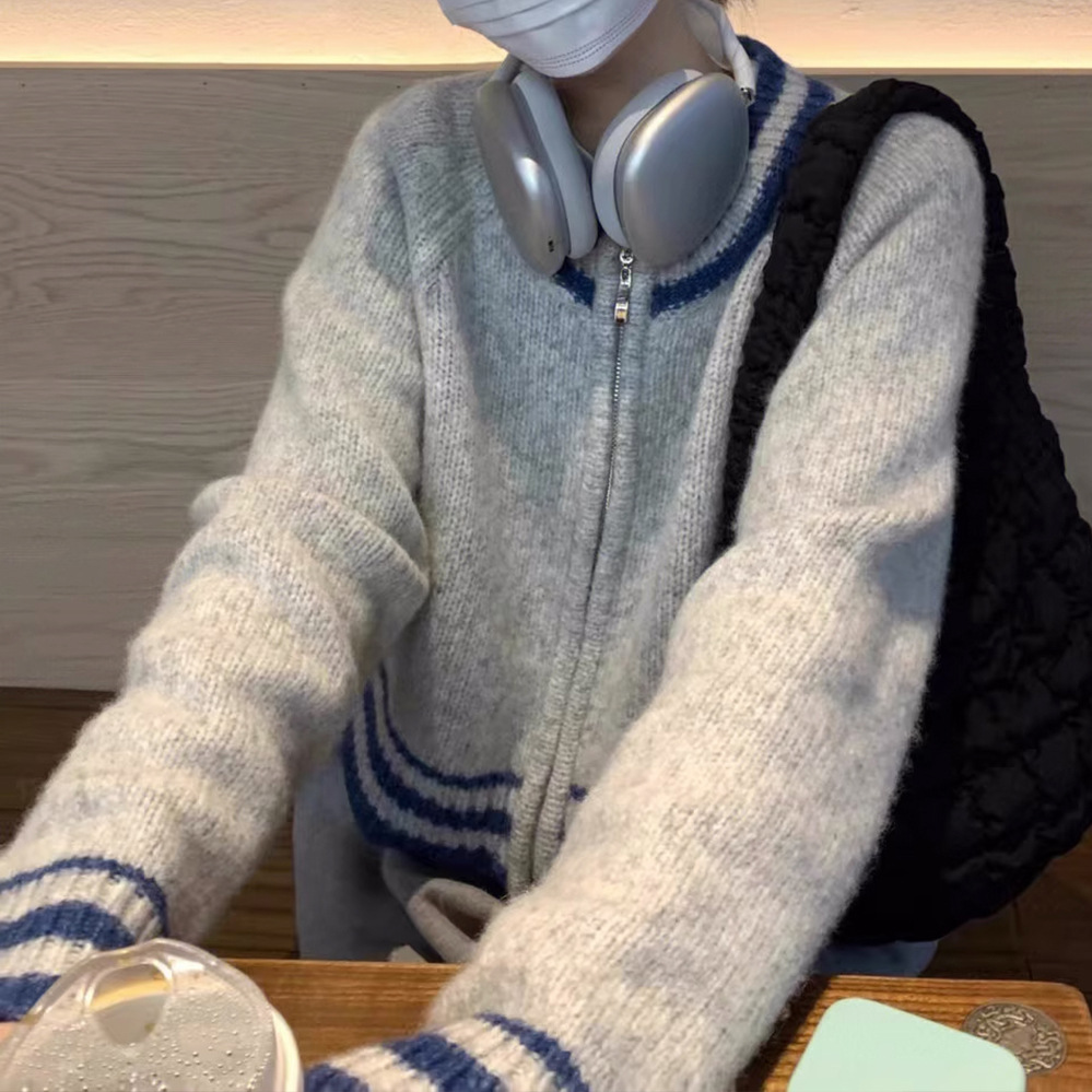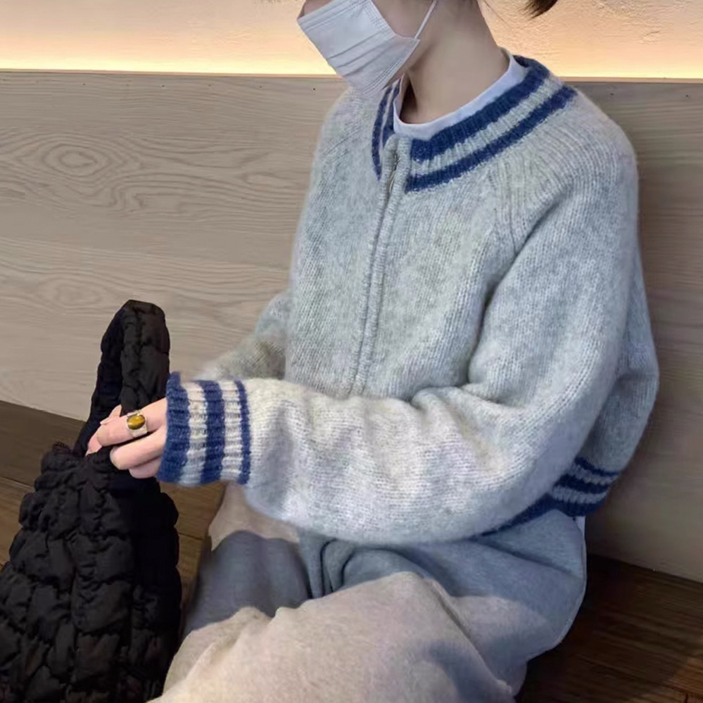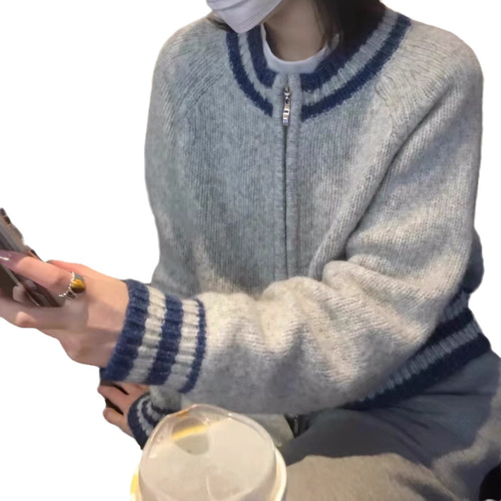 | nameOriginal | Grey Crewneck Zipper Age-reducing Sweater Cardigan Japanese Cross-border Foreign Trade Autumn and Winter New Short Coat Knitted Sweater for Women |