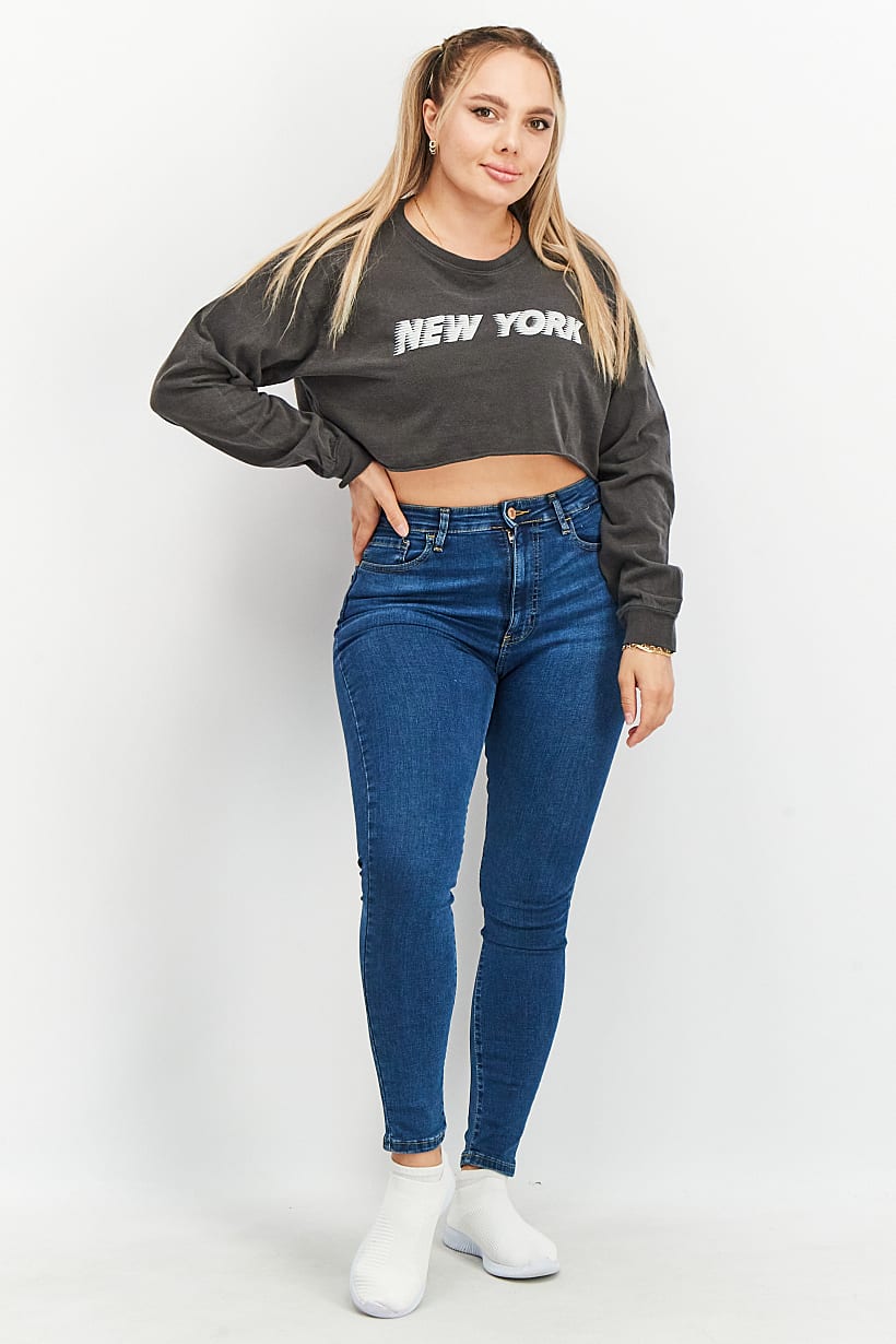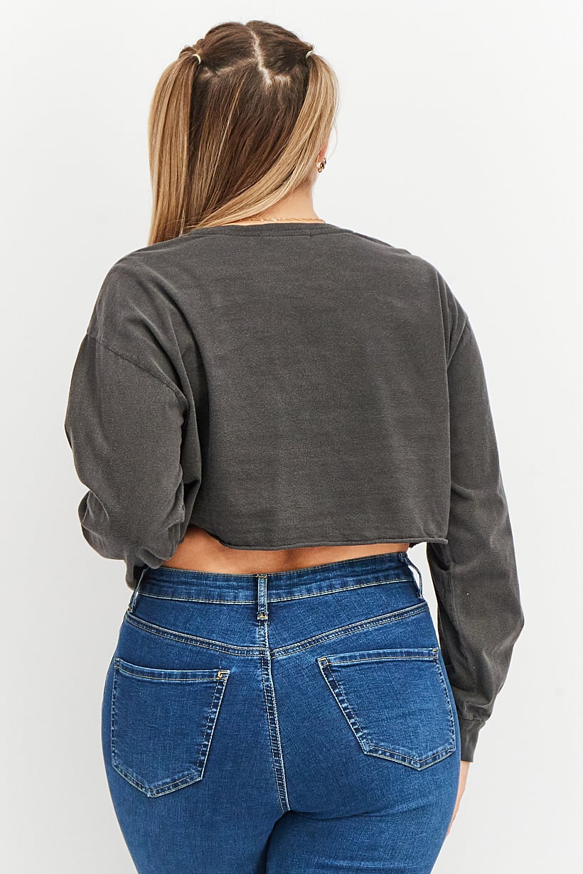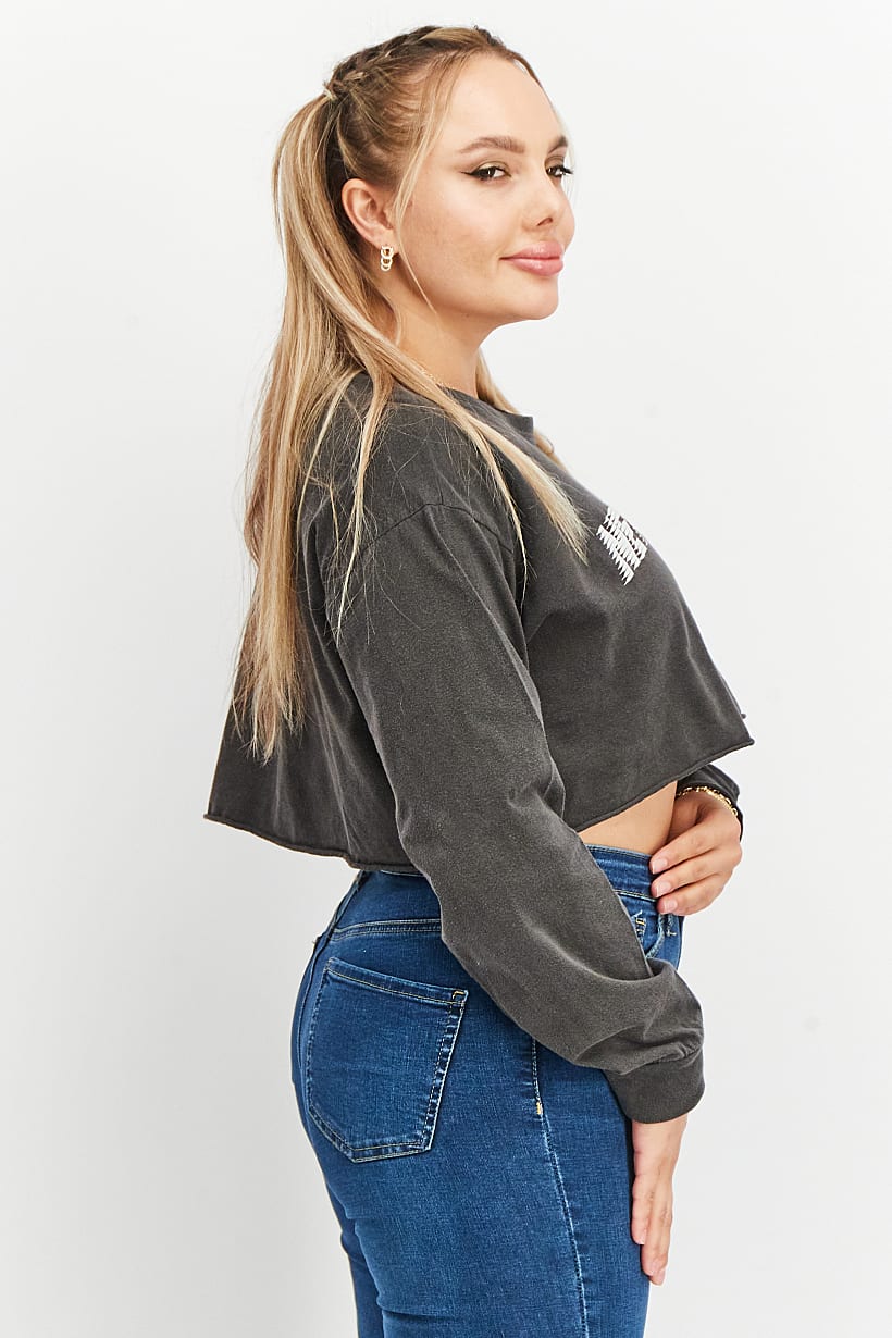 Care : Machine washable, Fit : Regular fit, Ideal For : Women, Size shown : US, Top Style : Cropped, Types of Hem : Straight hem, Types of Neckline & Collar : Crew neckline, Types of Sleeve : Longsleeve, Disclaimer : Product color may slightly vary due to photographic lighting sources or your monitor settings., Fabrics : 100% Cotton, Occasion : Casual, Pattern & Print : Graphic print, Types of Closures : Pullover, Color Family : Grey,
