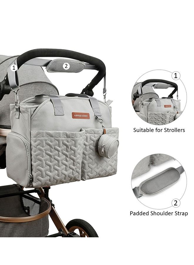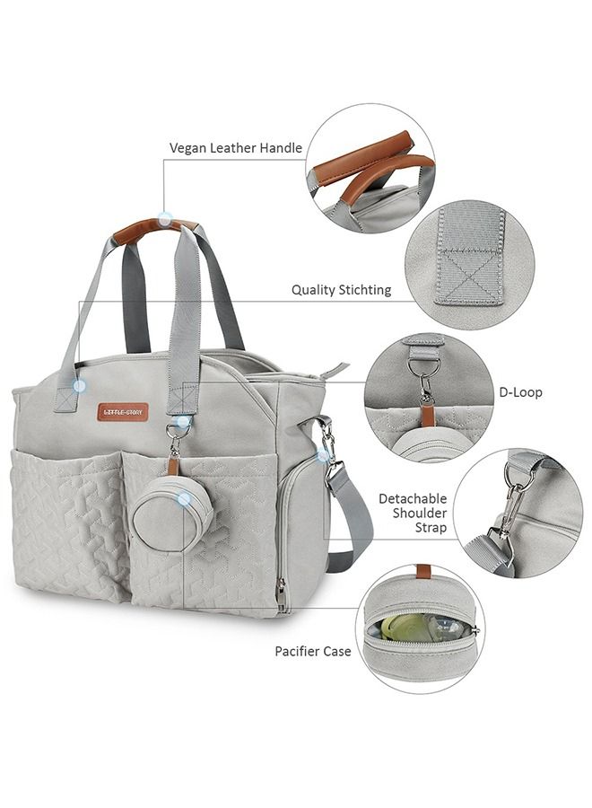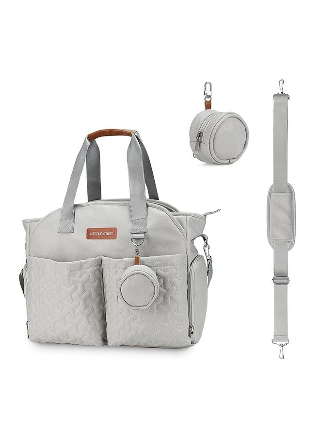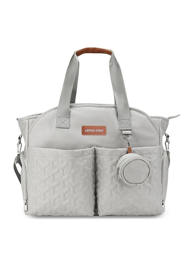 Upgrade your diaper bag game with our Quilted Diaper Bag with Pacifier Pouch in Grey, the perfect combination of style and functionality!