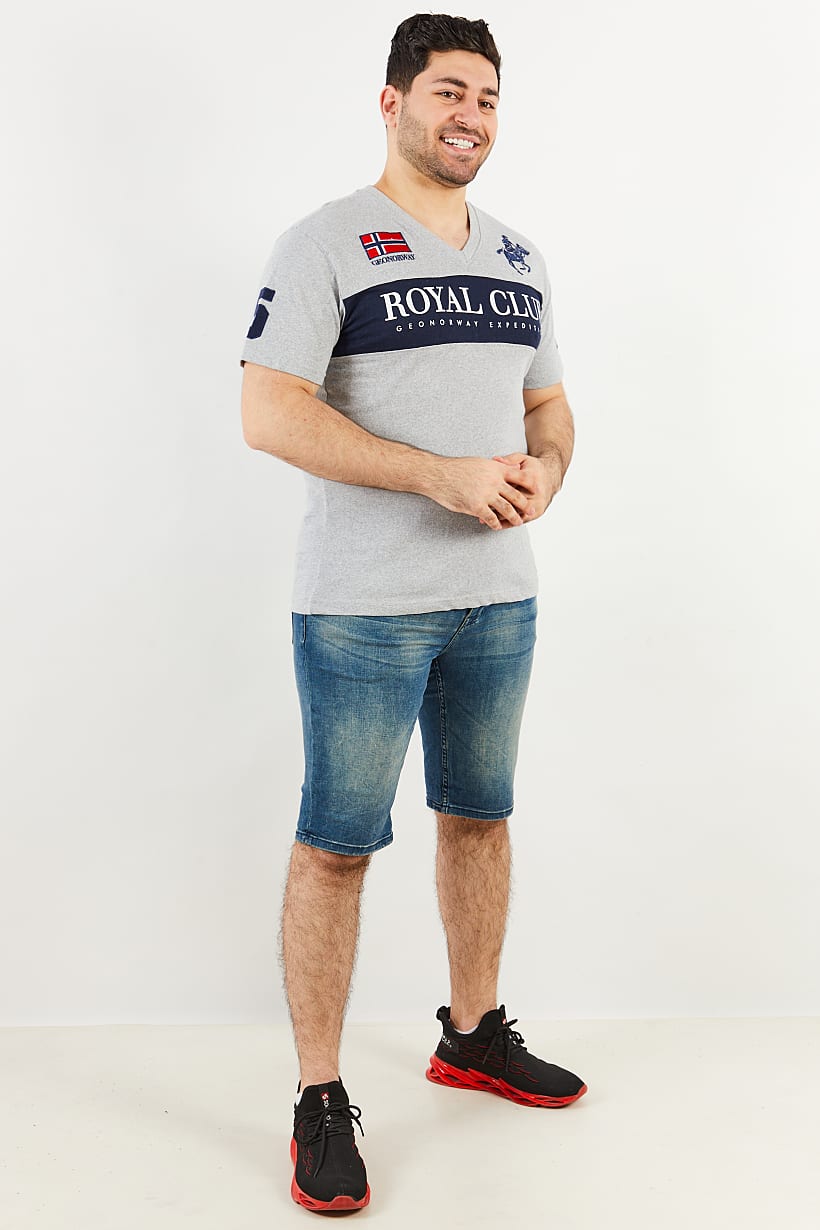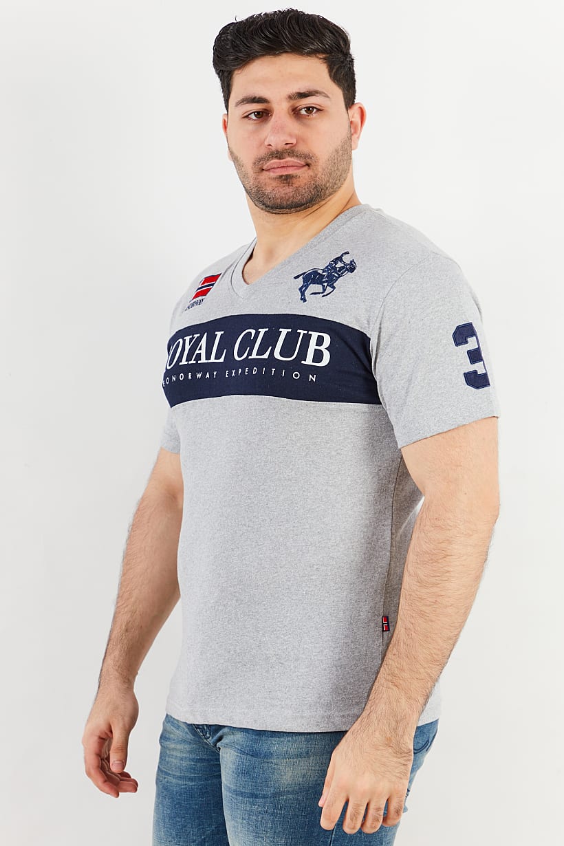 Grey Embroidered Logo T-Shirt with V-Neck for Men, Short Sleeves.